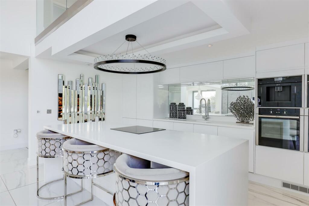 Full Description: An architecturally impressive, magnificent detached family home with amazing sea views. Offering contemporary accommodation over 4200 sq ft to include; hallway with WC, open plan living with under-floor heating leading to the south facing walled garden with swimming pool. Plus, utility room and home office. First floor with five double bedrooms, 1 en-suite and a luxurious family bathroom. Second floor cinema room with roof-top garden. Externally presenting fully landscaped grounds with hot tub and enticing seating areas, plus superb garden room. Double garage and plenty of private parking. Located in the Vale of Glamorgan, this one of a kind home offers family living at the highest specification. Cowbridge School Catchment. EPC Rating; B.Situation - Rhoose offers a mixture of old and new properties located close to the coast. The Village of Rhoose offers a school, a number of shops and eateries and a train station allowing for good transport links. The near by town of Barry offers a great number of facilities and open spaces. Rhoose is situated in the Vale of Glamorgan and is surrounded by some delightful countryside yet is still within easy commuting distance of major centres such as the Capital City of Cardiff and Bridgend, as well as being in close proximity to Cardiff International Airport.About The Property - Approached from the main road in Rhoose, with its shops, cafes and Primary School, sits Sea View Court. A small executive development of five self-build homes; number 1 fronts this exclusive development benefiting from the most amazing sea views. This family home has been designed with Rako lighting system throughout providing state-of-the-art digital dimming technology to each room, which can be controlled remotely through wireless devices. Along with electrically-controlled blinds to remain. A porcelain paved frontage leads to the welcoming entrance hallway fitted with porcelain high gloss floor tiles with underfloor-heating throughout this ground floor level.This family home centres around the stylish open plan living with sleek kitchen/dining room presenting a range of quality handleless units and Corian stone worktops with central Island, complete with 8ft rotating Chandelier above. Integral 'Neff' appliances to remain to include; induction hob, dual ovens, micro/grill and coffee machine. Also an integral fridge/freezer and an additional larder fridge and freezer with full height wine cooker to remain. From here, there is a large utility room with access to the double garage and broad sliding doors from the dining area open onto a low maintenance private garden space.The kitchen/dining room opens seamlessly into the family room which is filled with plenty of natural light and enjoys a lovely outlook over the superb south-facing garden. A central focal point is the fitted entertainment unit with inset electric fire and alcove for a wall-mounted TV.The formal lounge combines indoor/outdoor living with full height broad sliding doors opening out onto the porcelain terrace, and a central feature to this room is the wood panelled acoustic wall with fitted electric fire.Completing the ground floor is a study ideally located off the entrance hall, and a 2-piece cloakroom/WC.An extra wide staircase fitted within a circular tower leads to the first floor with airing cupboard and a range of fitted mirrored storage cupboards. The impressive principal bedroom has sliding doors lead to the balcony spanning the front of the house, with views towards the sea and offers a range of fitted wardrobes. This room benefits from its own elegant ensuite with walk-in shower and rainfall head.There are four further double bedrooms to this floor; two of the larger front-facing double bedrooms have the benefit of a 'Jack & Jill' style dressing room (previously an ensuite) and also lead to the balcony. The other bedrooms have shared use of the luxurious family bathroom accessed from a feature landing with glass balustrading with freestanding dual-ended bath.To the second floor; there is a lavish cinema room fitted with an 8ft Ultra HD screen, SONOS surround sound system and access to a roof top garden with fantastic views towards the coast.Gardens And Grounds - The impeccably kept gardens have been well designed to include a sunny private south-facing front walled garden with swimming pool and sunken hot tub with composite deck. With feature sitting area, porcelain terrace and planted olive trees providing a Mediterranean feel to this amazing entertaining space, with pool house / garden room. In addition there is a secluded and sheltered rear garden area accessed from the kitchen / utility. The front driveway provides off-road parking for five cars leading to an integral double garage with electrically-operated doors and full power supply. There is planning permission in place (ref; 2021/01340/FUL) to extend over the garaging to create a sixth bedroom with dressing room and en-suite, plus additional garage.Additional Information - Freehold. All mains services connect to the property. Gas-fired central heating. Council tax band G.BrochuresSea View Court, Fontygary Road, Rhoose, Vale of GlEPC LinkBrochure