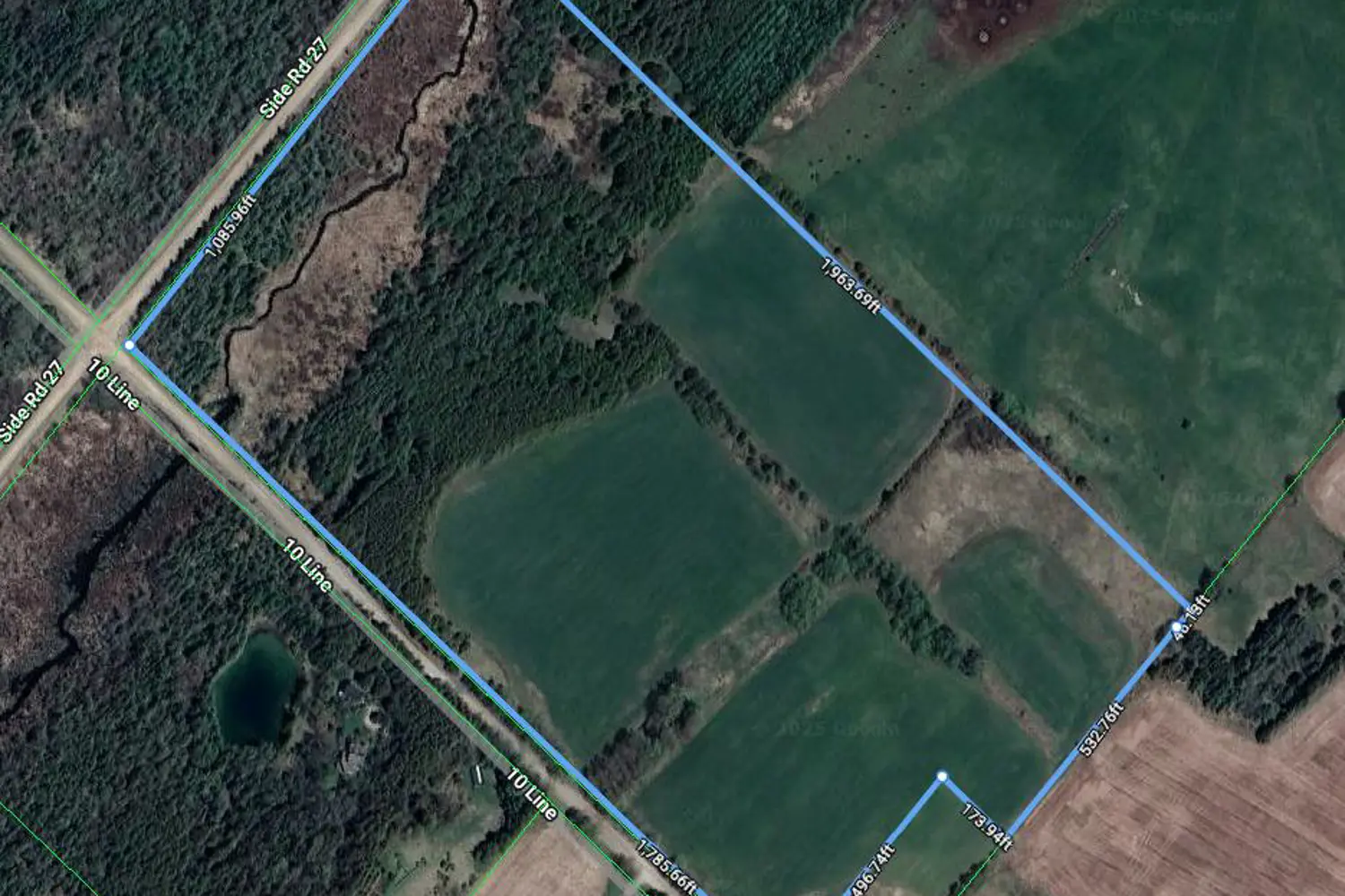 Scenic 46 acre corner lot. 25 Acres of Hillsburgh sandy loam more or less, currently farmed, over looking bush with Credit River tributary. This property has a 5 mile view sitting high in the hills of Erin. The place to build your retreat.
