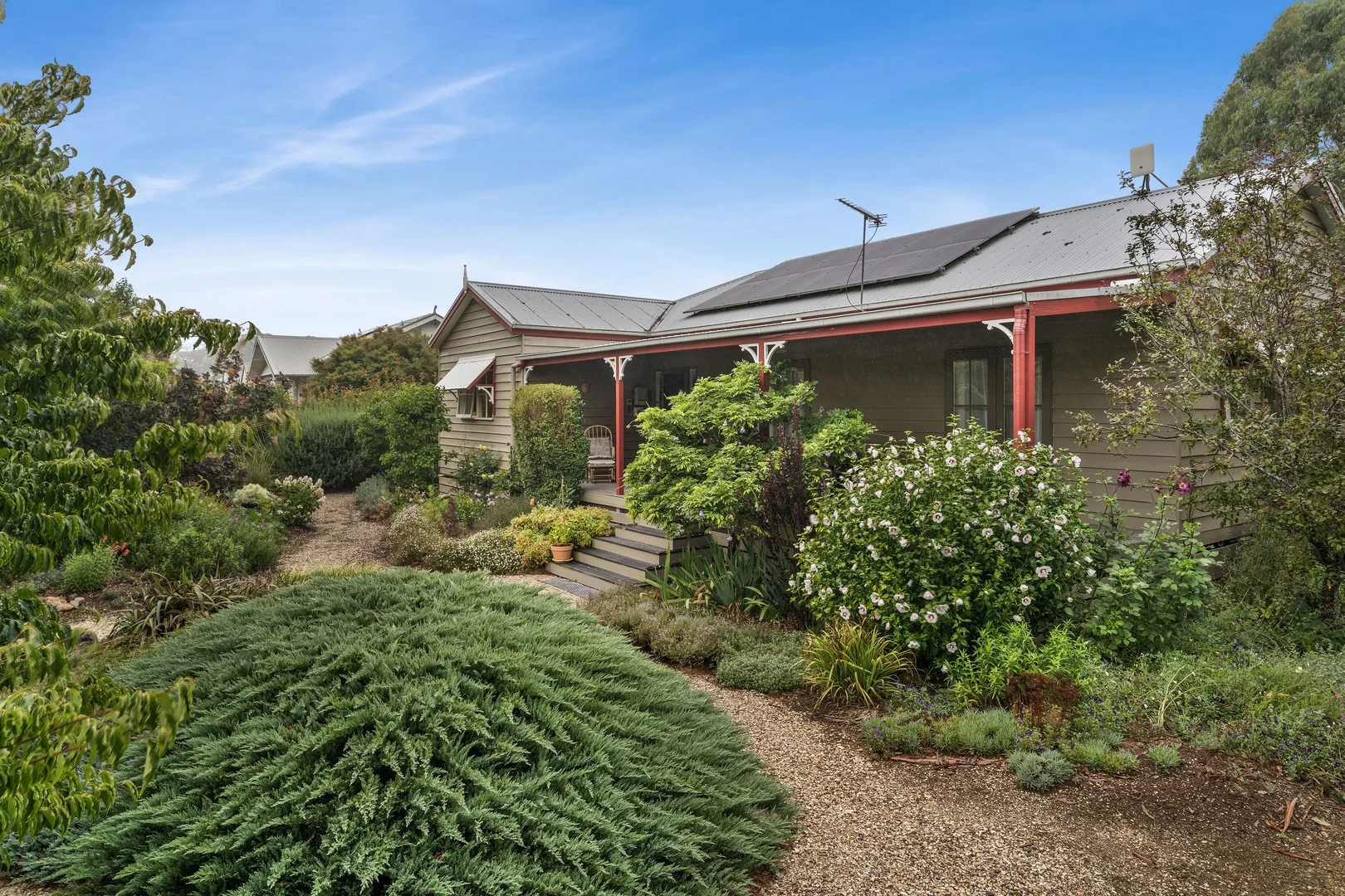 Description: Charming Trentham Home on Expansive Garden Allotment Set on a generous 1,631 m² (approx.) allotment in the heart of Trentham, 1 Walter Street presents a beautifully maintained Yarra Valleybuilt home offering comfort, character, and space to breathe. Thoughtfully upgraded and designed with family living in mind, this inviting residence combines timeless charm with modern functionality. The home comprises three well-proportioned bedrooms and one bathroom, with a total floor area of approximately 128 m². Slightly higher ceilings enhance the sense of light and space, while polished floors, French doors, and a dedicated dining room add warmth and elegance throughout. The bedrooms are privately positioned in their own living wing, ideal for families or those seeking separation between living and resting zones. The master bedroom enjoys direct access to a walk-through bathroom, complemented by a separate toilet for added convenience. An updated laundry further enhances everyday practicality. At the heart of the home, the well-appointed kitchen is equipped with quality appliances including an Asko oven, Smeg cooktop, Bosch dishwasher, and a deep pantry providing excellent storage. Year-round comfort is assured with a Daikin split system, strong insulation, and additional underfloor insulation, while fresh paintwork and new drapes complete the move-in-ready presentation. Outdoors, the property truly shines. Three decked outdoor areas offer versatile spaces for entertaining or quiet relaxation, surrounded by established gardens and a beautiful pin oak tree that adds seasonal colour and charm. The expansive backyard provides plenty of room for children, pets, or future landscaping possibilities. Additional features include a powered garage with blue-finish floor, excellent drainage via an easement along the right-hand boundary, and modern utilities such as NBN connectivity, a 3kW solar system, and a tank pump located under the house. Positioned in a peaceful Trentham setting, this delightful home offers a relaxed country lifestyle with all the comforts already in placeready to enjoy from day one. Don't miss out on this one. Make an appointment today with Frances