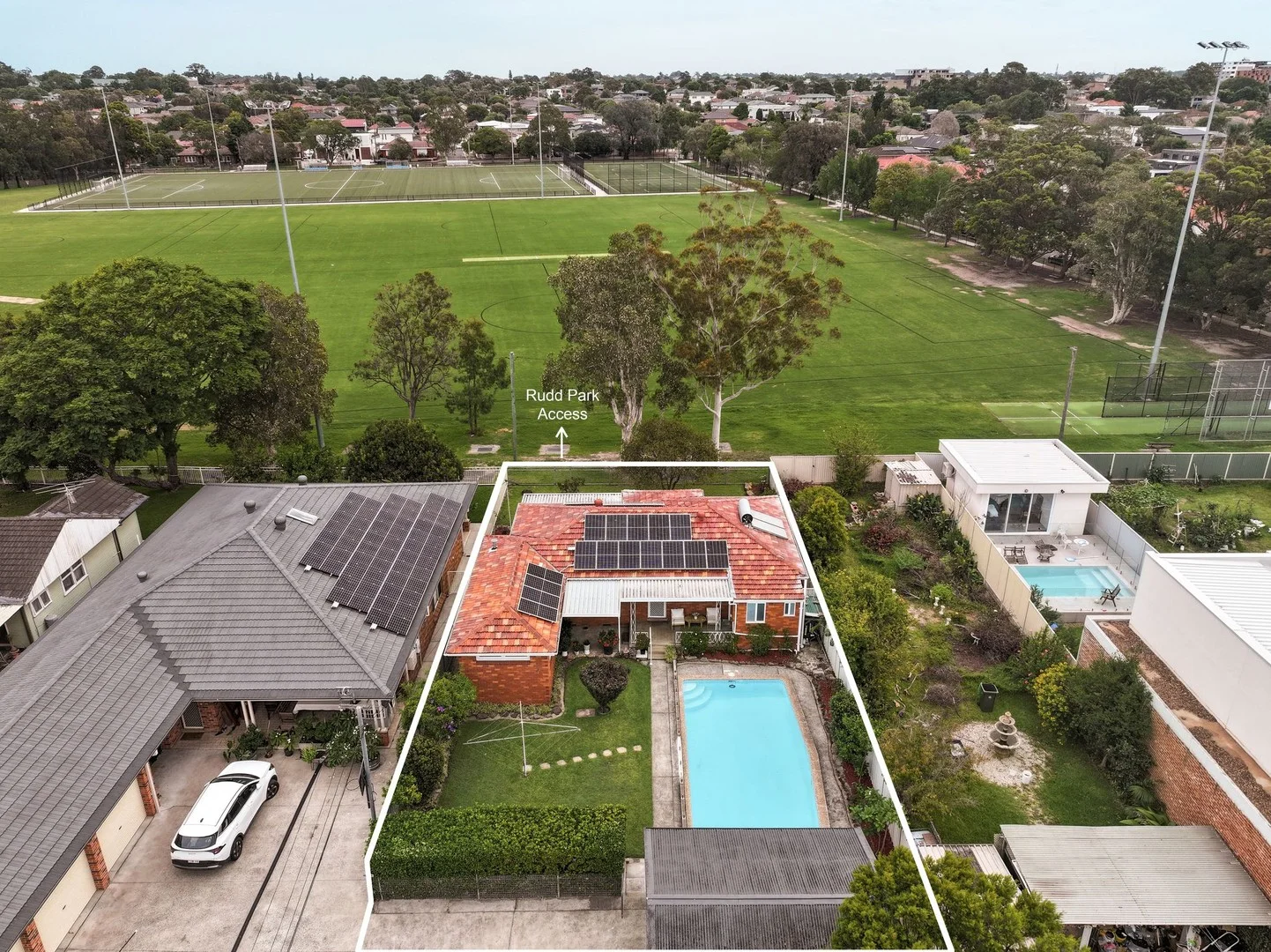 Description: The lucky purchasers will enjoy 'never to be built out' views of the lush grounds of Rudd Park from the living/entertaining and sleeping zones. Come home, to oversized living zones and abundant outdoor entertaining zones, offering luxurious comfort with every square inch of this family home, renovated to perfection. Its location is close to local transportation, parks, shops and schools. - Only a select number of homes have direct access to family fav Rudd Park - Expansive open plan living zones overlook the lush grounds of Rudd Park - Stunning family kitchen with a breakfast island and premium cabinetry - Secluded child-friendly rear yard with an oversized concrete in-ground pool - Photovoltaic solar-enabled home with excellent energy efficiency - Front and rear covered verandah on a substantial 739sqm land parcel - Two fully renovated bathrooms with superior fittings and finishes - Four generous bedrooms with polished flooring and built-in wardrobes - Ducted air-conditioning, LED lighting, stone bench tops, double garage - Add value via a second-floor addition or rebuild your dream home STCA Renovated for the growing family, seize this opportunity to live directly in front of Rudd Park on a large 739sqm land parcel. This is one of the best hidden tranquil positions in Belfield with a mesmerising green outlook to the park that will make any day feel brighter. Come and experience this family friendly park-side position.