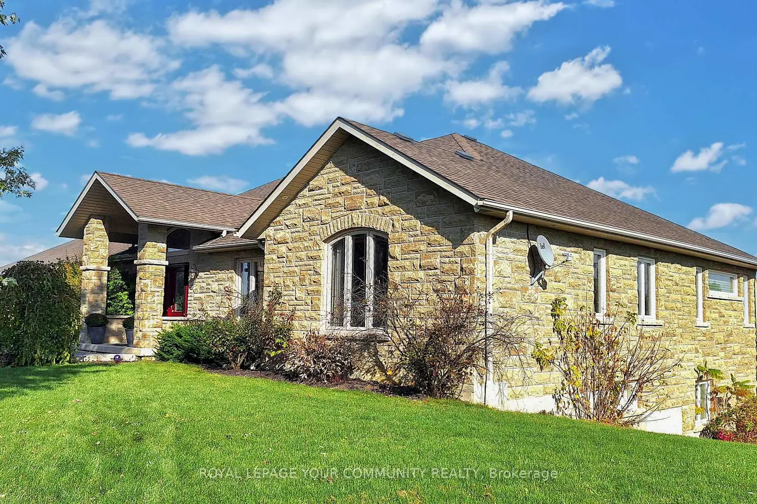 A long, private driveway leads you through picturesque rolling land, past two spring-fed ponds, a children's playground and a full soccer field, arriving at a truly magnificent country estate. This beautifully crafted stone bungalow showcases modern luxury on nearly 28 acres, offering an unmatched blend of residential elegance and commercial functionality.The home welcomes you with open-concept living, vaulted ceilings, and a bright great room that walks out to a spacious lanai overlooking the backyard oasis. Newly renovated main-floor bathrooms elevate the interior, while the gourmet kitchen and seamless flow make entertaining effortless. The main level features 3 bedrooms, and the finished walk-out basement adds 2 additional bedrooms, a large rec room with fireplace, built-in bar, and a lower-level dining area ideal for gatherings by the pool.Outside, enjoy a resort-style retreat with a saltwater swimming pool, waterfall, hot tub, and poolside bar-all set against serene natural views. Car enthusiasts will love the massive 6-car, two-level garage, with the lower level easily convertible into an impressive gym or hobby space. Radiant floor heating, central AC, surround sound, and 4 gas fireplaces offer year-round comfort.For business owners, the rare zoning for a contractor's yard is an extraordinary advantage. The property includes 25,000 sq.ft. of outdoor storage, a 6,500 sq.ft. heated indoor garage/workshop, plus a 1,200 sq.ft. one-bedroom apartment above the workspace. The workshop features heated floors, extensive second-level office space, and abundant parking-perfect for operating a business onsite without compromising luxury living.Located just west of Hwy 27 and north of Hwy 9, minutes from Schomberg, this exceptional property offers privacy, beauty, lifestyle, and commercial opportunity all in one.