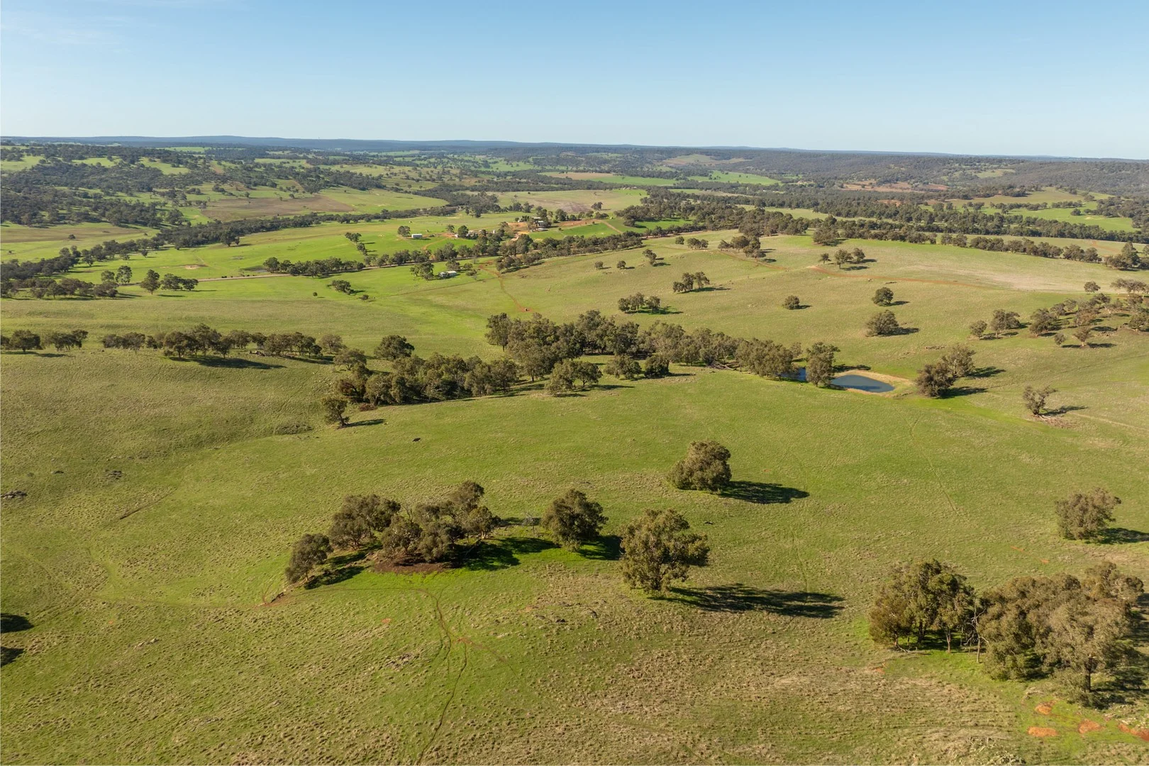 Description: Stunning views of the world. This excellent 163 ha parcel gently rising from the bitumen road, over heavy red soils, to level, lighter working soils at the rear. Excellent water for grazing stock and natural trees for shade and shelter. Mains power and a serviceable 1960's cottage, farm size general purpose shed and yards. Ideal for sheep, cattle and hay production in a wonderful near city environment.