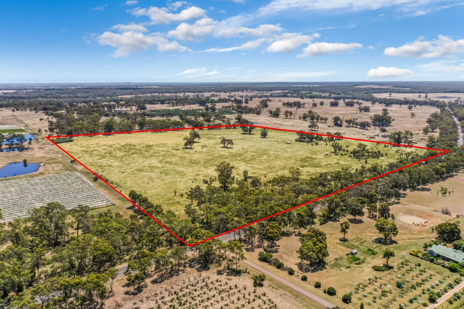 Description: This approximately 60-acre property may be able to be subdivided into three blocks STCA. It is Zoned Farming Schedule 2, it is in a small pocket where subdividing may be an option. Located in the Heathcote wine region, this block is located on a main highway which gives way to different options for developing. Ladys Pass is approximately halfway between Heathcote and Toolleen.