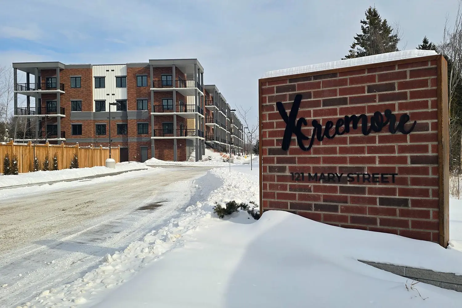 Enjoy the ease of condo living in the heart of Creemore, a vibrant four-season village known for its charm, trails, golf, and ski hills. This premium 3-bed, 2-bath corner unit at The Brix offers nearly 1,400 sq ft, one of the largest floor plans in the building, complete with an oversized nearly 300 sq ft wrap around private balcony overlooking a peaceful forest backdrop. Bright and beautifully designed with large windows, this suite features luxury vinyl plank flooring, a chef-inspired kitchen with an oversized eat-in island, and an open-concept layout ideal for entertaining. The primary bedroom includes a walk-in closet and private ensuite, while a second full bathroom offers semi-ensuite access for guests or family. Two owned parking spaces are included, along with access to modern amenities such as a gym and a stylish party space for gatherings. Whether you're looking to downsize in style or enjoy a weekend retreat, this move-in ready suite offers the perfect blend of space, comfort, and low-maintenance living in one of Ontarios most desirable small towns.