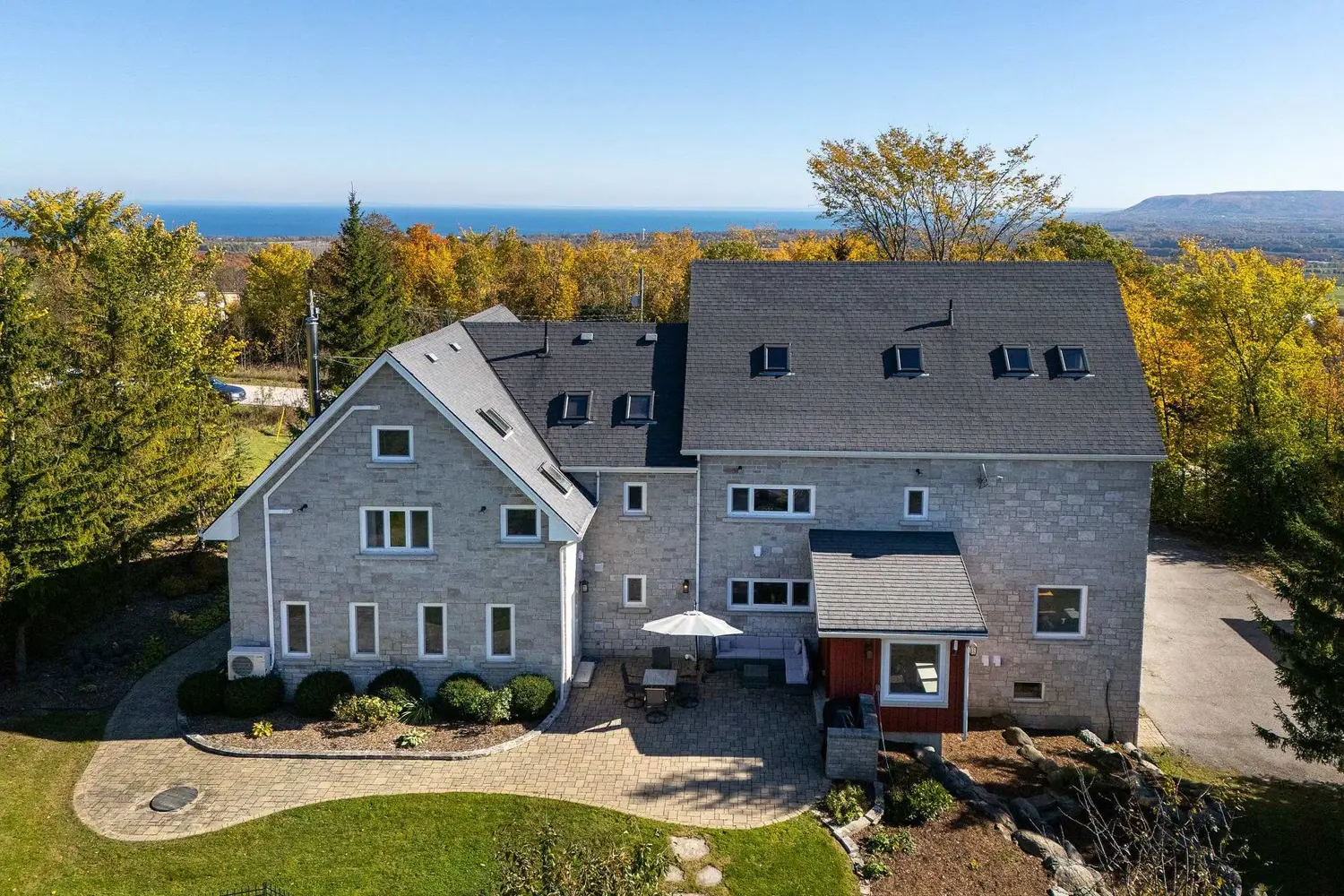 Stunning Timber Frame Estate on 2.5 Acres in Thornbury. Exceptional stone-clad timber frame residence offering approximately 6,300 sq. ft. of beautifully crafted living space, set on 2.5 private, fully landscaped acres. Designed for extended family living, entertaining, or use as a luxury short-term rental (Airbnb), this one-of-a-kind property delivers comfort, privacy, and four-season enjoyment. The maintenance-free all-stone exterior provides superior insulation and quiet durability, while the timber frame construction and South American hardwood floors add warmth and character throughout. Expansive, light-filled principal rooms create an inviting atmosphere for both everyday living and hosting larger groups. The home features 6 bedrooms and 6 bathrooms, including a primary suite and guest suite with private ensuites, offering excellent flexibility for family and guests. The chef's kitchen is complemented by a butler's pantry and separate baker's kitchen, ideal for entertaining or catering. European tilt-and-turn windows enhance energy efficiency and indoor-outdoor flow. Resort-style amenities include a 17-foot indoor swim spa and sauna, geothermal heating and cooling, and radiant in-floor heating throughout. Multiple living areas provide ample space and privacy, making the layout well suited for short-term rental use. Additional highlights include a 36' x 24' heated workshop with separate driveway, perfect for hobbies, storage, or a home business, and a 26' diameter dome greenhouse for year-round gardening. Furnishings are negotiable, offering potential for a turnkey rental opportunity. Ideally located minutes from Thornbury and Meaford, and a short drive to Blue Mountain Village and private ski clubs, this chalet-inspired estate offers an outstanding opportunity to enjoy a premium recreational lifestyle or generate income in a sought-after four-season destination.