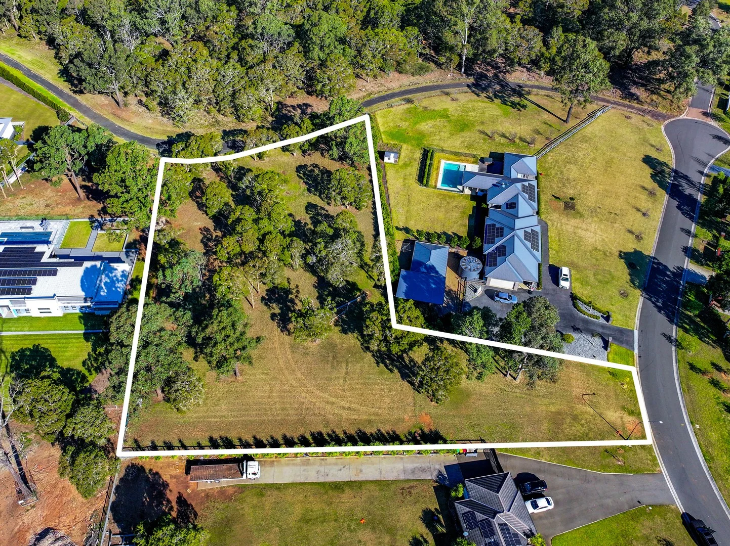 Description: Nestled in the highly regarded Twin Creeks Estate, this substantial 4,830sqm (approx.) parcel presents a rare opportunity to build a luxury home tailored to your vision. Surrounded by quality residences and with dual street access, the block offers both flexibility and convenience for future design. - Registered and level 4,830sqm (approx.) allotment with dual access and services to kerb - Dual street access via a 14.84m frontage and a second 52.63m boundary - Versatile layout ideal for a range of architectural builds or multi-garage designs - Privately positioned in an exclusive pocket of Twin Creeks, surrounded by established luxury homes - Enjoy estate amenities including tennis courts, swimming pool, clubhouse, event facilities and a championship golf course - Close to the future Bradfield City (6km), Western Sydney Airport (7km), and key road links including Northern Road, M4, and M7 - Only 12km to Penrith CBD, Westfield and major transport infrastructure Set within a growing lifestyle hub, this prime block is an exceptional opportunity for those seeking space, privacy, and long-term investment in Sydney's fast-evolving western corridor.