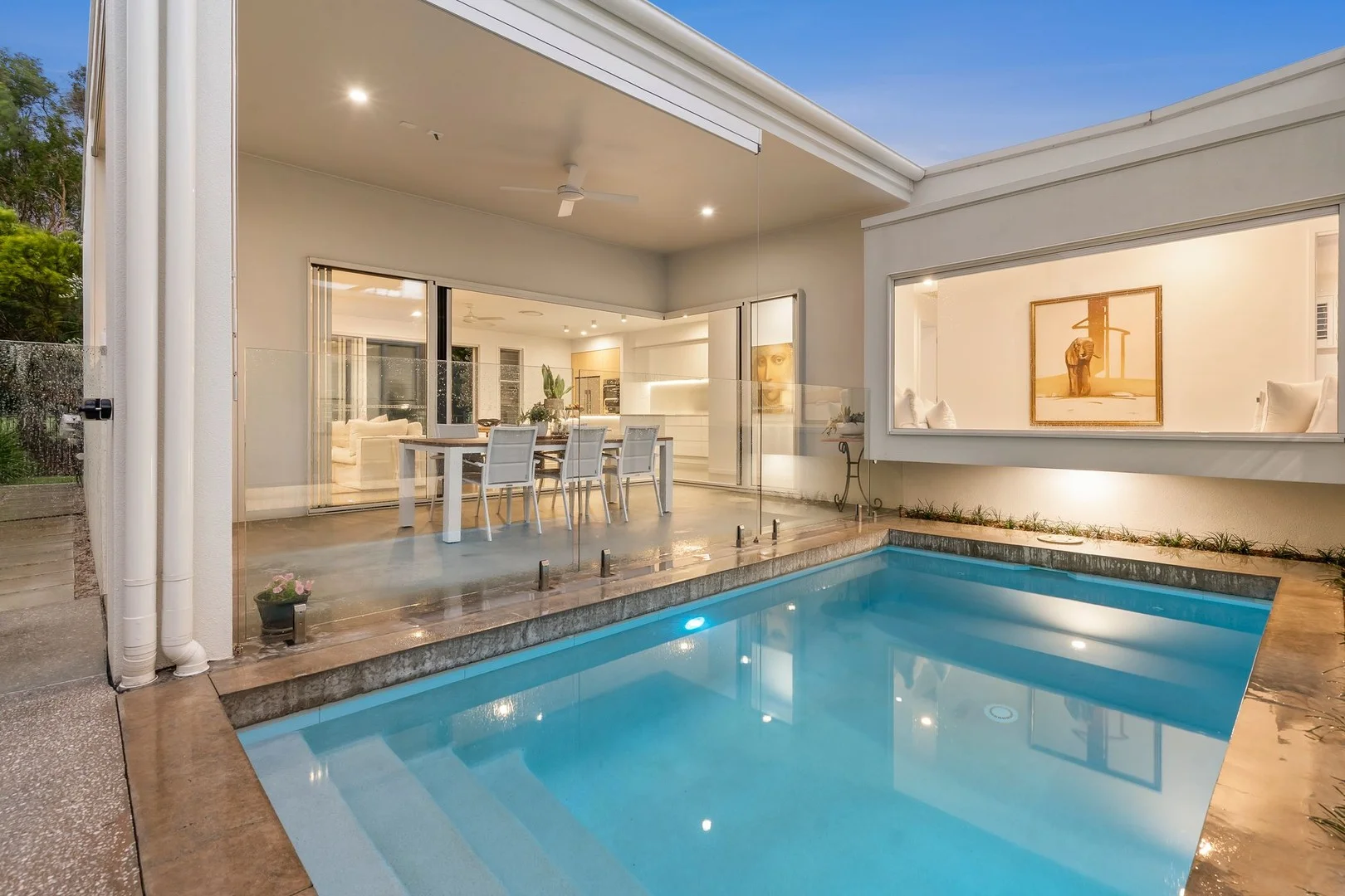 Description: Luxury and location unite with stunning effect at this architectural poolside residence on a prestigious flat allotment backing onto the Peregian Springs Golf Course. This is a beautiful, bespoke single-level modern coastal home crafted around a salt-chlorinated, solar-heated plunge pool and backdropped by bushland and fairways. It is a feast for the senses, with uninterrupted north-easterly nature views, soaring ceilings extending up to 3m high, and walls of glass that open the home to the elements in true sub-tropical style. Premium finishes feature throughout including stone benchtops to all wet areas, fully tiled bathrooms, quality tapware, polished concrete floors, clerestory windows with remote operated blinds, and much more. The sleek kitchen is a refined culinary space with Miele cooking appliances (double ovens and a 900mm induction cooktop), an integrated Bosch dishwasher, and a walk-in pantry. Stacker doors slide back on each side of the family zone to create a connected pavilion-style space, opening to both the covered entertaining terrace and the rear lawn. The floorplan provides privacy between the master suite and the remaining accommodation wing, while a built-in window seat by the pool provides an idyllic spot to soak up some quiet time. Enjoy three living zones, a study nook, an ensuited guest bedroom, and a spacious master featuring a double-vanity, double-shower ensuite, a large walk-in robe, and a nature view. Low-maintenance, professionally designed gardens frame the home, and glass louvre windows catch cooling breezes. Further features include zoned ducted air-conditioning and heating, ceiling fans throughout, extensive storage, and a double garage with epoxy flooring and a bank of storage cupboards. The stunning home also offers a 13.2kW solar panel system with a 10kW inverter and 16kWh battery, thermal insulation to the garage door, a Dolphin S200 pool cleaner, integrated irrigation systems, wire-guided sunscreen awnings, retractable insect screens to the covered entertaining terrace, and beautiful natural light. Features Include: - Prestigious golf-course position on a flat 525m2 allotment - Architectural single-level coastal home with north-easterly aspect and bushland views - Salt-chlorinated, solar-heated plunge pool with seamless indoor-outdoor living - Soaring 3m ceilings, walls of glass, polished concrete floors, and premium stone finishes - Designer kitchen with Miele appliances, integrated dishwasher, and walk-in pantry - Pavilion-style living opening to covered entertaining terrace and rear lawn - Three living zones, study nook, and built-in window seat by the pool - Private master suite with luxury ensuite and walk-in robe plus additional ensuited guest bedroom - Professionally landscaped, low-maintenance gardens and cooling louvre windows - Zoned ducted air-conditioning, ceiling fans, extensive storage, and epoxy-floored double garage - 13.2kW solar panel system with 16kWh battery, plus quality extras including robotic pool cleaner, automated irrigation, awnings, and insect screens