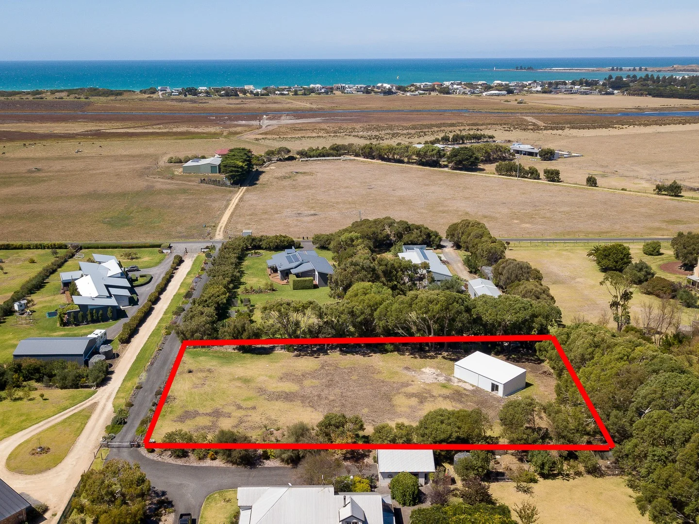 Description: 1 Acre Highly desirable, exclusive location down a private bitumen laneway New three bay shed on site. One bay has a sliding door perfect for studio/office space. Council approved "Arkular" architect designed plans for a fully customisable home and pool with Airbnb apartment or luxurious master suite, ready to go! Established boundary gum trees and flourishing new Moonah Forest trees providing privacy, shade and weather protection All services connected With a highly motivated vendor, now is the time to secure this private allotment and build your dream home.