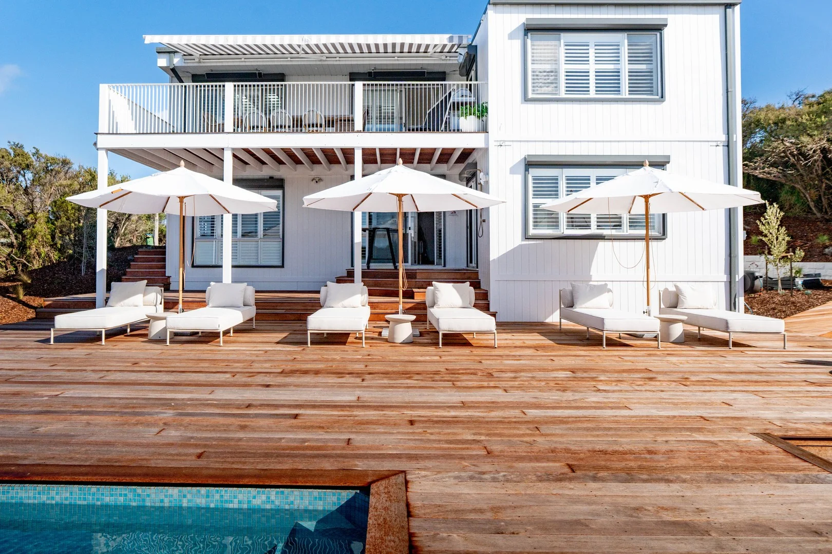 Description: Hear the waves crash against the sand of Alison Avenue Beach from this spectacular four bedroom plus study two bathroom Hamptons inspired entertainer on over an acre of coastal bushland. Nestled at the end of a long driveway, footsteps to the back beach walking trail, this near new oasis has panoramic views of the nearby hills and sand dunes. Inside, you'll be impressed by the high level of detail, including the brushed brass/bronze fittings, VJ board panelling, solid Oak floorboards and marble look finishes. Over three levels, the entrance level showcases a private fitted study, stylish bedroom with robes and attic ladder, a vogue wet room style bathroom and glamourous powder room. The lower level uses powdercoated white steel/glass doors to create connection, with a huge one sliding open to a multi-purpose children's living area with four concealed beds in bunk formation, plus a superb main bedroom suite with dressing room and luxe ensuite, and a custom laundry. The upper level is home to the incredible open plan living and dining area with its two metre wide electric fireplace, dining booth and stunning Hamptons style kitchen with its huge island, farmhouse sink, white Fisher & Paykel stove with pot filler, and Fisher & Paykel dishwasher and opening onto a fabulous alfresco terrace with café awning and heat strips, plus there is a fourth bedroom with robes and desk. Endless decking sets the scene for the electric heat pump heated fully tiled pool, a sunken conversational sitting area, fire pit area, outdoor shower and a boardwalk leading to a circular spa. All of this overlooks a private, newly planted vineyard of 122 Pinot vines, capable of producing 160220 bottles annually by year three, enough for a year of celebrations. Fully secure with automated gates to the driveway, Ring 8-camera CCTV, keyless door entry, Bosch alarm and automated shutters, this custom design is appointed with reverse cycle air conditioning, automated Velux windows, automated lighting including smart touch light switches, back lit mirrors, solar panels and extensive parking including a wide pergola that could be covered to be a double carport. In this exclusive no through coastal road, a short stroll to Dundas Street Back Beach shops, indulge in the lifestyle of hot springs, wineries, golf courses and the beach life in this beautiful position.