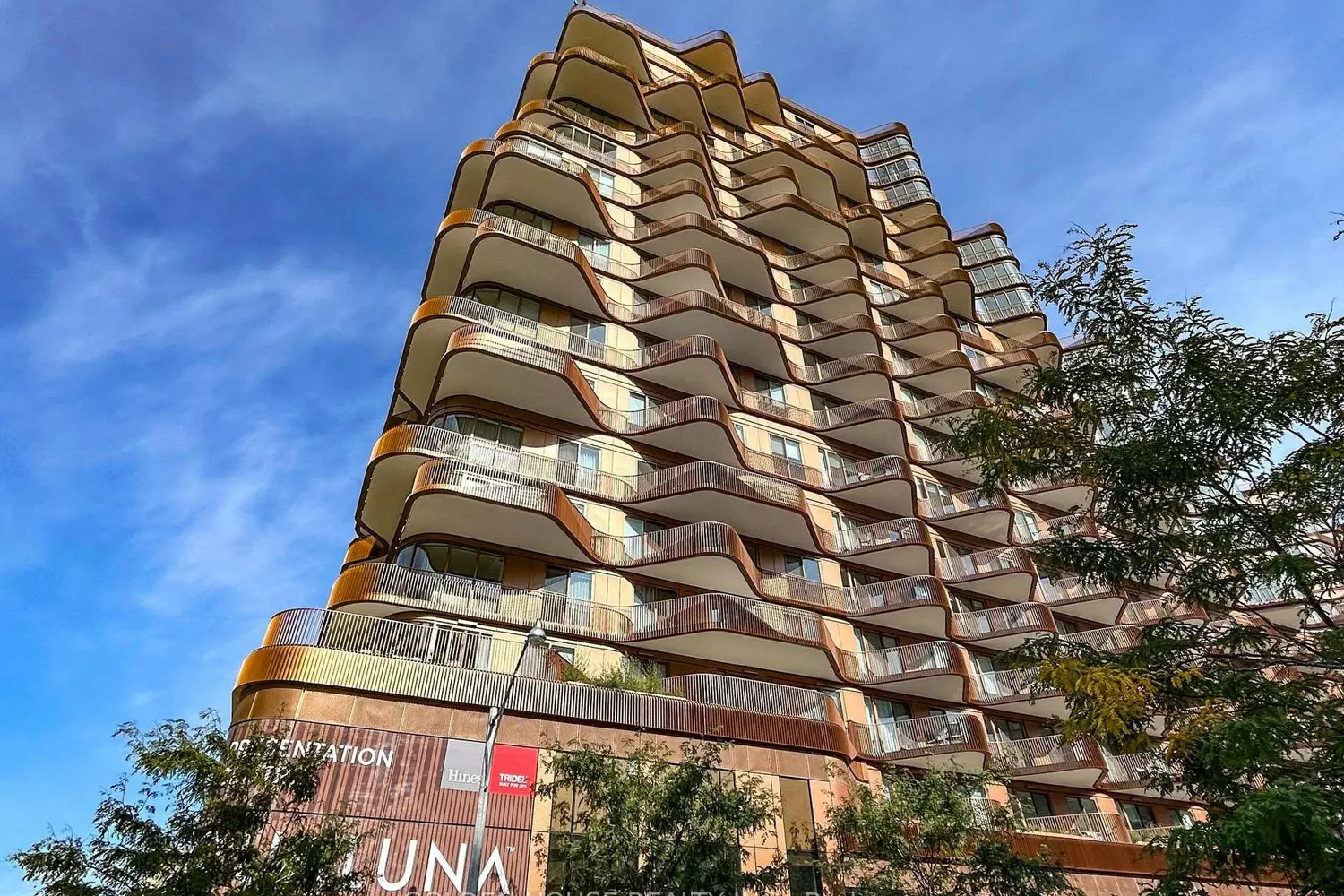 Located On Southwest Corner of Tower Closest To The Lake. Experience unparalleled waterfront living in this southwest-facing corner residence at Tridel's iconic Aqualuna. Offering 1,628 sq ft of interior space, this 2-bedroom, 2.5-bath home is enhanced by a private balcony and an expansive terrace - perfect for entertaining while enjoying sweeping lake and sunset views. The light-filled open layout features 10-ft smooth ceilings, floor-to-ceiling windows, and numerous custom upgrades, including a built-in wine cellar. A chefs kitchen with premium integrated appliances, elegant bathrooms, and generous storage complete the luxurious interior.Lots of upgrades including sound system, wine cellars etc. Building amenities include an outdoor pool, fitness and yoga studios, sauna, party and media lounges, and 24-hour concierge. One EV-ready parking space and two lockers are included. Steps to Sugar Beach, the waterfront promenade, and downtown Toronto, Aqualuna sets the standard for sophisticated lakefront living.