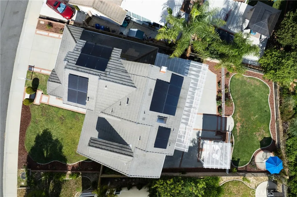 **VIEW HOME** Wonderful 5-bedroom, 3-bath home located on a quiet cul-de-sac in the highly desirable Walnut Valley Unified School District. Conveniently situated near Ronald Reagan Park with easy access to the California State Route 57 and California State Route 60. Double-door entry opens to a bright foyer with formal living and dining rooms featuring vaulted ceilings and large windows. Family room with fireplace opens to kitchen and dining area. Remodeled kitchen includes updated countertops, a Blanco sink, soft-close cabinetry, a GE Caf gas range/oven and microwave, and a newer Whirlpool dishwasher. Large garden window overlooks the backyard. The main floor includes one bedroom, one full bath, and an indoor laundry room. Upstairs features a primary suite with views of the San Gabriel Mountains, plus three additional bedrooms and two bathrooms. The primary bathroom has been remodeled with a walk-in shower and linen storage. Upgrades include Solar panels (Sunrun), PEX repiping, newer windows, updated flooring, a newer HVAC system, a soft water system, and a reverse osmosis. Spacious backyard with covered patio, gazebo, planters, and mountain views - ideal for entertaining. 2-car attached garage with potential for additional workspace or office conversion. Close to schools, shopping, and dining.