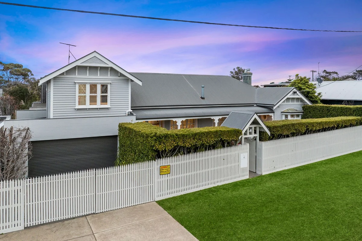 Description: With undeniable street appeal and a striking heritage façade, this iconic Torquay home makes an immediate statement. Exquisitely renovated and blending timeless character with modern refinement, it offers a coastal lifestyle of sophistication and ease all just a few hundred metres from the beach, vibrant restaurants, cafés, and shopping. Inside, soaring decorative ceilings, polished timber floors, and an abundance of natural light create an atmosphere of understated grandeur. A flexible floor plan caters effortlessly to both relaxed family living and refined entertaining. The expansive open-plan living and dining space is framed by large north-facing windows, while a designer kitchen takes centre stage with its butler's pantry, bespoke timber bench-tops, 900mm cooktop and oven all flowing seamlessly to a sun-filled front veranda, perfect for morning coffee or evening aperitifs. Accommodation is equally impressive: - A luxurious upstairs master retreat with pressed-metal feature wall, walk-in robe, and private en-suite. - A guest bedroom with its own en-suite for visiting family and friends. - A third bedroom with built-in robe, plus a flexible second living zone (or fourth bedroom) featuring a gas log fire. - A beautifully appointed main bathroom with stone vanity, a study, a separate laundry, and internal access to a remote-controlled double garage complete this magnificent home. Every detail speaks of quality plantation shutters, ducted heating and cooling, gas log fire, soaring ceilings, and manicured, private gardens basking in northern sunshine on a 426m² (approx.) allotment. This is more than just a home; it's a rare statement of style, history, and coastal prestige. Secure your place among Torquay's finest addresses enquire today.