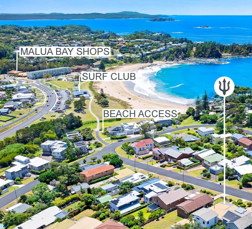 Description: Perched in an elevated position at the top of a quiet Malua Bay street, this impressive five bedroom home captures breathtaking views over Malua Bay Beach, North Point, and out to the sparkling eastern horizon. From sunrise to sunset, enjoy sweeping ocean vistas from multiple vantage points both inside and out. Designed with flexibility and comfort in mind, the home's spacious floor plan caters beautifully to family living, entertaining, or hosting extra guests. Across two levels, you'll find multiple living areas, a sunroom, games room, and several bathrooms ensuring everyone has their own space to relax and unwind. The north east orientation fills the home with natural light and coastal warmth year round, while the easy walk to the beach means you're just moments from swimming, surfing, diving, fishing, or simply soaking up the seaside atmosphere. Out the back, the low maintenance yard features its very own mini golf course, a playful touch that adds to the home's unique holiday charm. It's clear this property has been a haven for treasured memories, and now it's ready for you to create your own. Features * Elevated north east facing position with stunning panoramic water views * Five spacious bedrooms spread across two levels * Multiple living areas including upstairs lounge, family room, sunroom, and games area * Bright, airy interiors with large windows * Several bathrooms across both levels for convenience and privacy * Kitchen with generous storage and easy access to dining and outdoor areas * Balconies and outdoor spaces perfect for entertaining or simply soaking up the views * Low maintenance backyard featuring a fun mini golf course * Short, easy walk to Malua Bay Beach * Walking distance to shops * Quiet, tightly held street * In and out drive way with side vehicle access