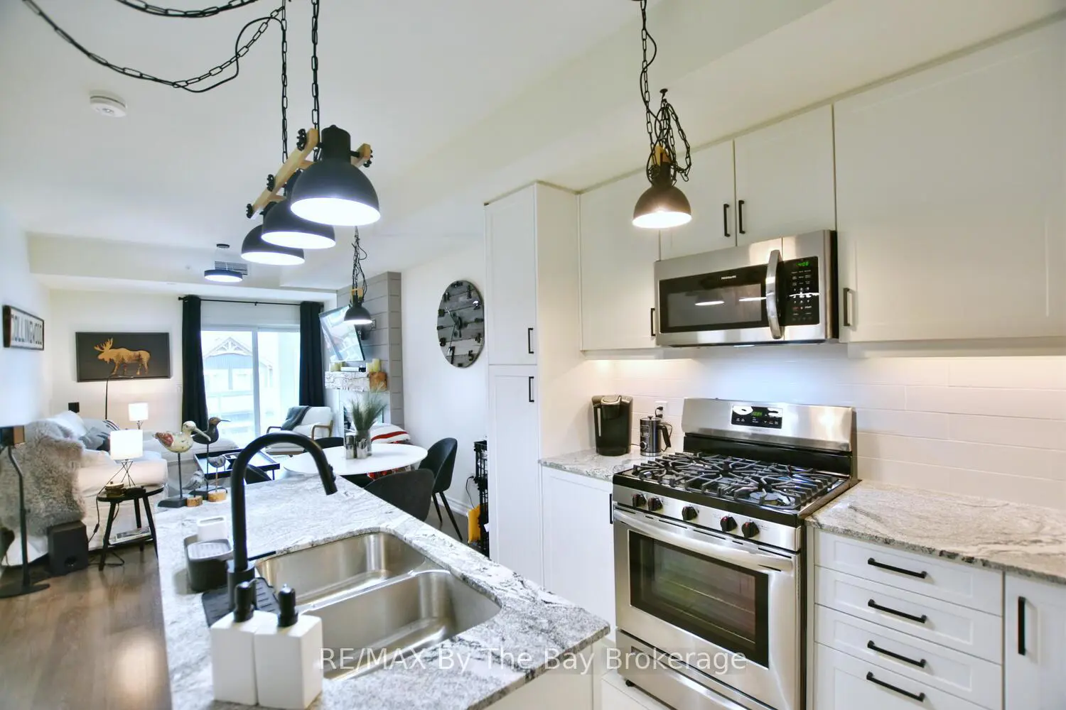 Welcome to Maintenance-Free Condo Living in the Heart of Collingwood. Discover the charm of Collingwood's sought-after Blue Fairway community with this beautifully appointed 2-bedroom, 2-bathroom condo. Perfectly situated just steps from the stunning Cranberry Golf Course, this condo offers the ultimate blend of luxury, comfort, and convenience. Step inside to an open-concept layout designed for modern living complete with beautiful upgraded lighting, barn doors and window coverings. The stylish upgraded kitchen features a large island, stainless steel appliances, accent lighting and custom cabinetry with updated hardware which is ideal for casual meals or entertaining guests. The bright living room with its cozy fireplace and dining area flows seamlessly together, creating a warm and inviting space. Both bedrooms are generously sized, and the spa-inspired bathrooms offer a touch of everyday indulgence. Extend your living outdoors on the spacious patio with serene distant views of the golf course and Blue Mountain in the distance. Practical touches include elevator access for easy grocery trips, underground parking, and a convenient storage locker. Residents enjoy exclusive access to the outdoor pool and recreation centre, making this the perfect four-season destination. Located close to restaurants, shopping, biking trails, golf, and skiing, this condo places the best of Collingwood right at your doorstep.