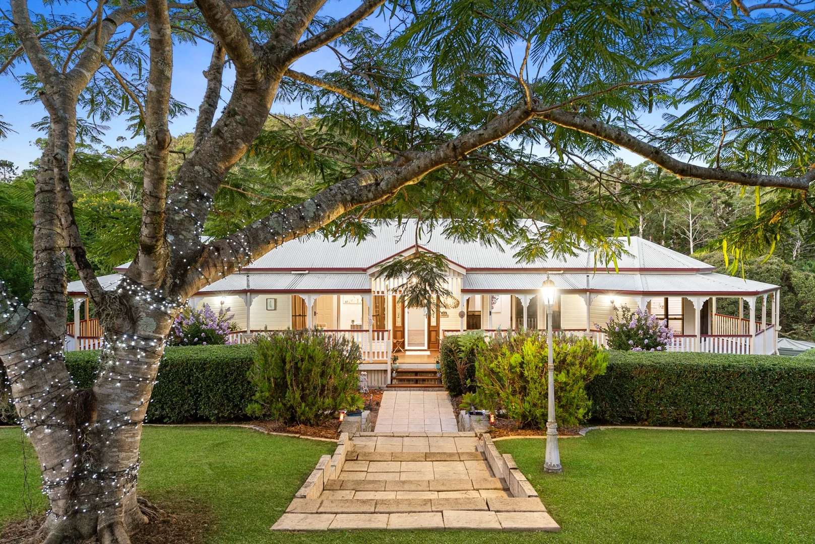 Description: Set within one of Wongawallan's most desirable acreage pockets, this utterly captivating, immaculately maintained home is set on 1.75 acres of gently sloping land, perfect for a pony, some highland cows, or just enjoying the tranquility. Surrounded by established landscaping and enjoying a peaceful, private setting, this property delivers the space and lifestyle the Gold Coast Hinterland is renowned for without sacrificing everyday convenience. The gently sloping, highly usable land is a true highlight, perfect for the family and pets, kicking a footy, or simply enjoying the wide-open space. The stunning corner location offers dual access from Timberview Drive and Bottlebrush Lane, providing additional flexibility and value. Elevated and north facing, the home is wrapped in expansive verandas, inviting year-round outdoor living and capturing tranquil hinterland outlooks from every angle, where you can relax to the soothing sounds of the gently flowing creek bordering the property. Whether entertaining guests or enjoying quiet moments, the sense of privacy and connection to nature is immediate. Inside, the home blends classic Queenslander character with modern comfort. High ceilings, polished hardwood floors and heritage-style finishes create warmth and timeless appeal, while the well-designed layout offers excellent separation of living and sleeping zones. The home features four spacious bedrooms, with the master suite privately positioned and complete with walk-in robe, ensuite and direct veranda access. At the heart of the home, the spacious kitchen with breakfast bar and large pantry flows seamlessly to the dining and outdoor living areas, making it ideal for everyday living and entertaining. A separate lounge/media adds to the functionality for modern family living, and is complemented by spilt-system air conditioning and a wood fireplace. Adding to the value, Crimsafe screens have been fitted to all doors and windows, and plantations shutters in the living areas. Downstairs, functionality continues with lock-up garaging for 2 vehicles, and a large storage area, offering ample space for a workshop or equipment storage. Home Features: • 4 bedrooms including master with WIR, ensuite and veranda access • 2 bathrooms plus powder room • Spacious kitchen overlooking the back yard, paddock and backdrop of trees • Polished hardwood floors • Stunning high ceilings throughout • Multiple living areas including separate lounge/media • 5x split system air-conditioners • Ceiling fans throughout • Crimsafe to all doors and windows • Tinted windows and bamboo plantation shutters Property Features: • 1.75 acres of gently sloping, highly usable land • Securely fenced, featuring hardwood post and rail to horse paddock • Expansive north-facing verandas capturing hinterland outlook • 76,000L water storage • Tandem lock-up garage, plus storage • Established low maintenance landscaping • Summer creek bordering the property 17 Timberview Drive offers a rare opportunity to secure the peaceful acreage lifestyle, with a stunning character-home in the heart of the Gold Coast Hinterland. The location adds to the appeal, and the lucky new owners will find themselves minutes away from everything they need, including schools, shopping, and amenities. Set in picturesque Wongawallan, a 45-minute drive to Brisbane, or 30 minutes to the Gold Coasts stunning beaches, this property will not last long. Contact Robyn Wickham or Clint Hynes today to secure your private inspection before you miss out! DISCLAIMER: We have in preparing this advertisement used our best endeavours to ensure the information contained is true and accurate, but accept no responsibility and disclaim all liability in respect to any errors, omissions, inaccuracies or misstatements contained. Prospective purchasers should make their own enquiries to verify the information contained in this advertisement. 'This property is being sold without a price and therefore a price guide cannot be provided. The website may have filtered the property into a price bracket for website functionally purposes'.