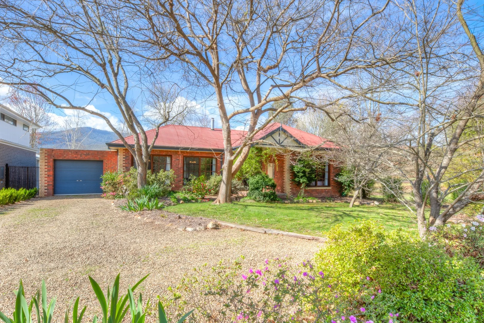 Description: Set on a generous block with park like crown land at the side, this beautifully presented brick veneer family home offers space, privacy, a wonderful outlook and a fabulous lifestyle for the growing family. Boasting 9ft ceilings throughout, the home features a spacious open-plan kitchen and dining area, a generous lounge and a dedicated home office. There are three Queen sized bedrooms, including the master with a walk-in robe and ensuite, while the other two bedrooms include built-in robes. Zoned floor heating and reverse-cycle air-conditioning in the kitchen/dining area ensure comfort year-round, and near floor-to-ceiling windows capture abundant natural light, enhancing the home's northerly aspect. Slate tiles flow through the kitchen, dining, and main traffic areas for a stylish and practical finish. Outside, enjoy a private, paved and covered entertaining area that is perfect for Friday night BBQs, or lazy Sunday afternoons. A fully enclosed rear yard that is perfect for a growing family with shady trees and grassy space and just a beautiful ever-changing backdrop of surrounding farmland through to Mt Porepunkah beyond. Additional features include a single garage under your main roofline along with a double garage with a separate studio/games room/kids' zone/man cave. Conveniently located within walking distance to the golf course, schools and directly across from the river and rail trail, this property combines space, privacy and lifestyle in one exceptional package.