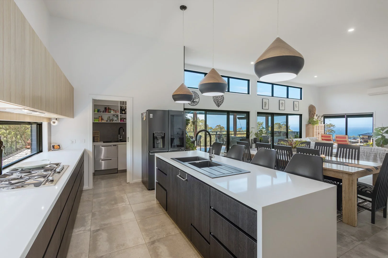 Description: Welcome to 178 Mirador Drive, a beautifully designed coastal residence where sweeping ocean views and resort-style living come together across two spacious levels. Perfectly positioned to capture breathtaking ocean vistas from both floors, this home offers an exceptional lifestyle for families, entertainers, and those seeking multigenerational flexibility or the bonus of additional income. The main level opens into a bright, airy living space where high ceilings, soft window furnishings, air conditioning, and large grey tiles frame the panoramic ocean outlook. The contemporary kitchen with butler's pantry features stone benchtops, modern appliances, and a double-draw dishwasher, flowing effortlessly into the open-plan living and dining area. From here, sliding doors open onto a large entertainment deck, an ideal setting for alfresco dining, gatherings, or simply relaxing while soaking in the sweeping coastal views. Outdoor blinds enhance comfort and year-round usability. A conveniently located powder room with stone benchtops also sits on this level for guests, as does the large laundry with a handy walk-in linen cupboard. A versatile room on the main floor can function as a study, gym, or fifth bedroom. Also situated on this level is the beautifully appointed self-contained unit, perfect for extended family, guests, or potential rental income. This space has its own driveway with single garage and internal access and includes a loungeroom with soft window furnishings, a bedroom with plantation shutters, and a kitchenette. Whether used for permanent rental, short-stay accommodation, or as independent living quarters, it offers excellent income-producing potential (subject to local guidelines). Downstairs, the second living area opens directly to the poolside and frames gorgeous ocean views through wide glass doors. Three generous bedrooms with built-in mirrored wardrobes are located on this level, including a main downstairs suite with a ceiling fan, walk-in wardrobe, and private ensuite. Stone benchtops feature in each bathroom throughout the home, and an additional walk-in linen cupboard provides excellent storage. Also located beneath the home is a substantial workshop and storage area, ideal for trades, hobbies, tools, or additional household storage. This highly practical space adds significant functionality and flexibility, catering to those needing extra room for projects, equipment, or organised storage solutions. Outside, the home embraces a true resort feel. The 12x4m heated lap pool, powered by a heat pump, is complemented by a tranquil Balinese gazebo, perfect for unwinding or entertaining by the water. Campervan and boat storage is easily accessed from the backyard, adding practicality for those with larger vehicles or outdoor hobbies. Established fruit trees including mandarin, lime, passionfruit, plums, and blood orange bring charm and productivity to the garden, while the extensive collection of statues, pots, and plants will remain with the property. Thoughtfully designed with luxurious finishes, a flexible layout, a large entertainment deck, workshop and storage, and uninterrupted ocean views, 178 Mirador Drive offers an extraordinary blend of comfort, style, space, and coastal elegance, enhanced by the added benefit of income potential from the self-contained unit.