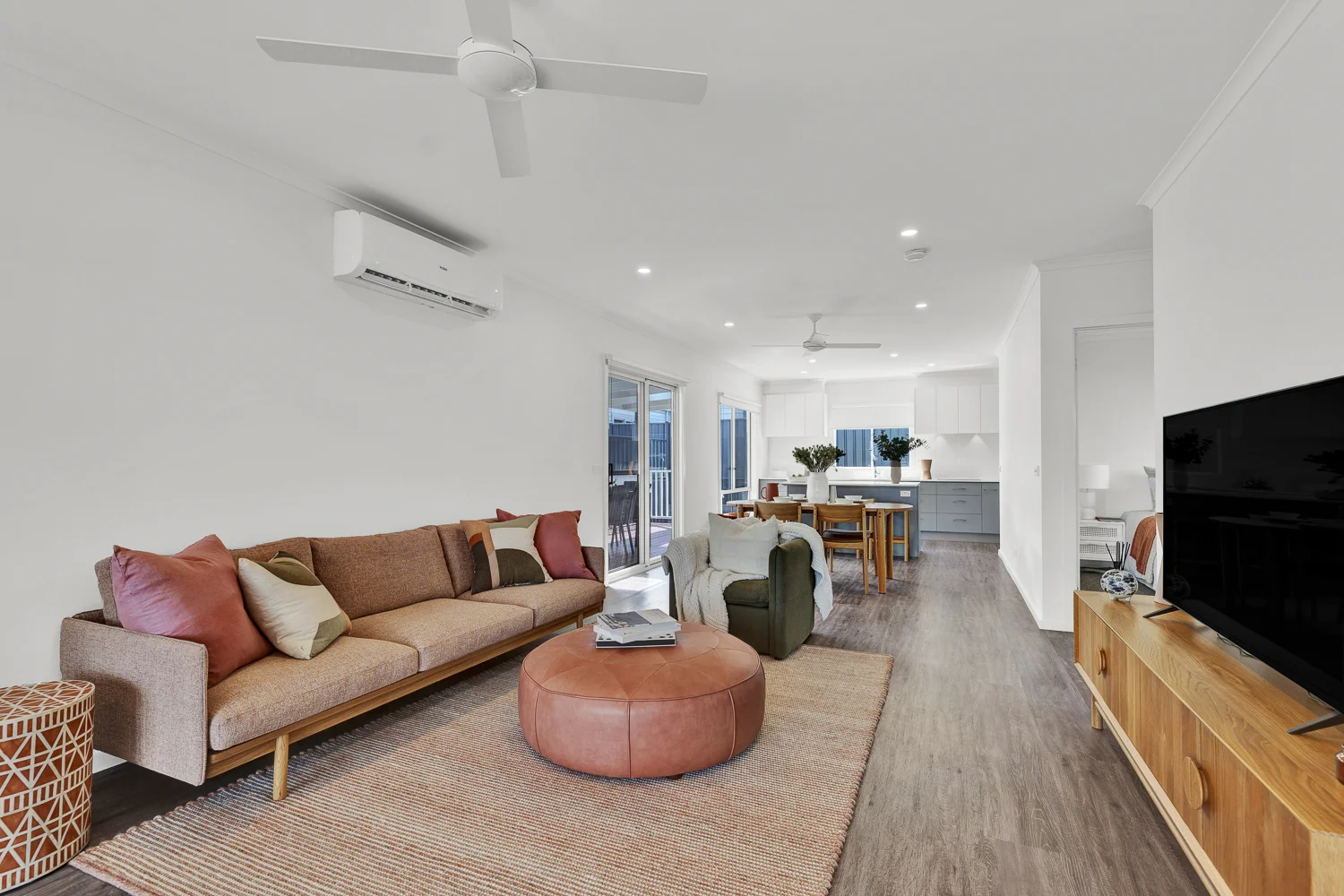 Description: A gorgeous two-bedroom home for you to downsize with style. This home welcomes you with an airy and ambient feel and has a perfect flow from the living room and dining area through to a glorious kitchen. It is a baker's dream with the well-appointed kitchen, quality appliances and offset butler's zone, including cupboards and bench space for clever storage options. The master bedroom is perfectly sized and has a fitted-out walk-in wardrobe. The home has an extensive undercover decking area which is perfect for indoor/outdoor living. Ceiling fans give this neat and desirable home a coastal vibe.