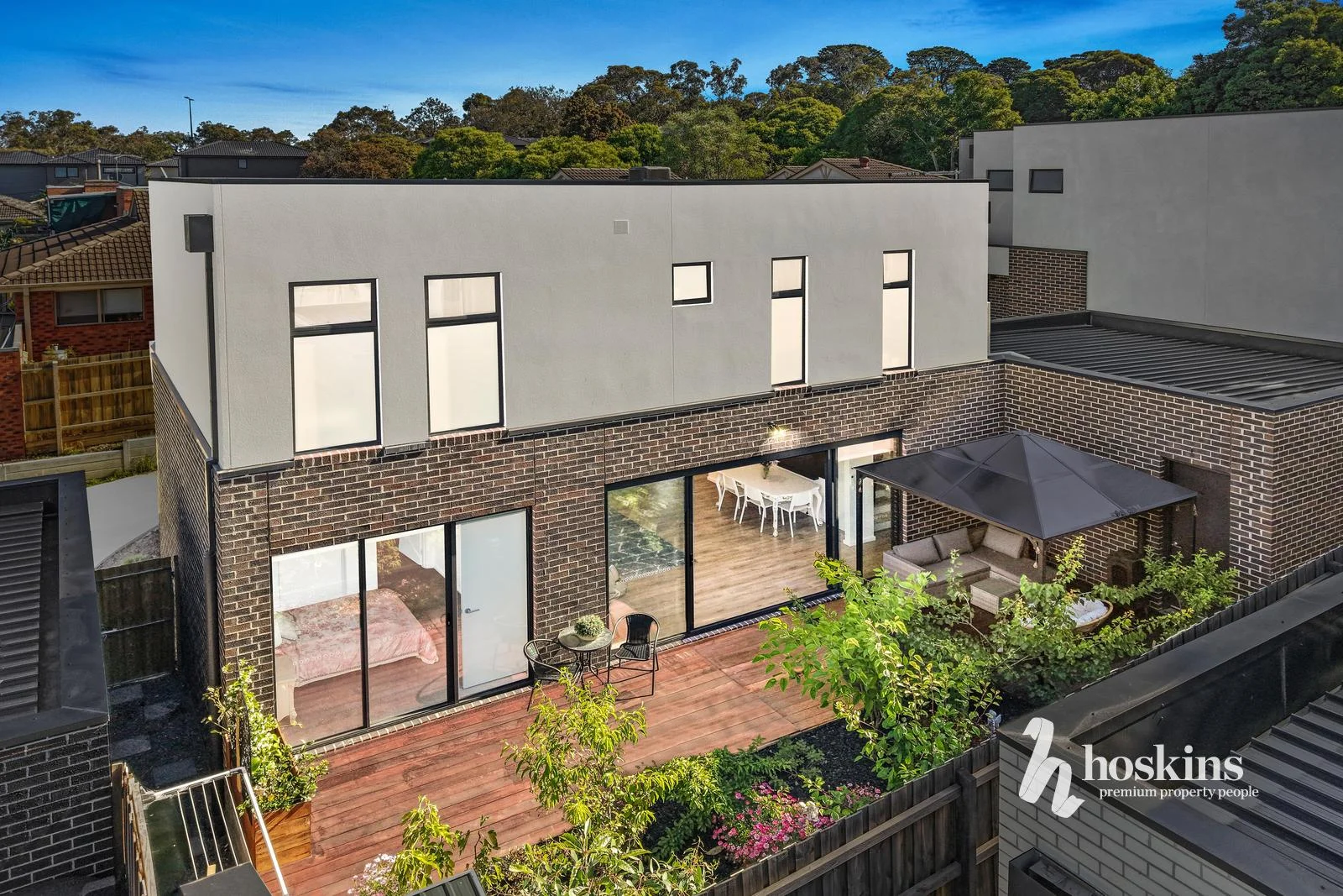 Description: Near-new and tucked very privately within a premium trio, this town residence delivers care-free glamour, outstanding space and a coveted lifestyle where you can walk to many sought-after amenities. A 4 bedroom, 3 bathroom layout only metres from Karralyka Theatre and East Ringwood Reserve's off-lead dog park, tennis club and football club, enjoy catching up with family and friends across the stone island that graces the glistening kitchen with Westinghouse stainless steel appliances. With stylish floorboards underfoot, the open-plan dining/family room is wonderfully bright with a north-facing aspect and double sliding doors that achieve that desirably seamless interaction with the sun-splashed alfresco deck, under-cover area and colourful garden backdrop. Flaunting the privacy of a spacious upstairs retreat and the versatility of a ground floor guest bedroom with a stone ensuite and an upstairs master bedroom with a dual-vanity ensuite, there is an abundance of space for relaxation. Finely appointed throughout, there's a powder room, dual-vanity bathroom, high ceilings, double glazing, multiple split system air-conditioners and internal access to a double auto garage. Only moments from excellent schools including Tintern Grammar, live near hospitals, Ringwood East Village, the train station, Eastland and Eastlink.