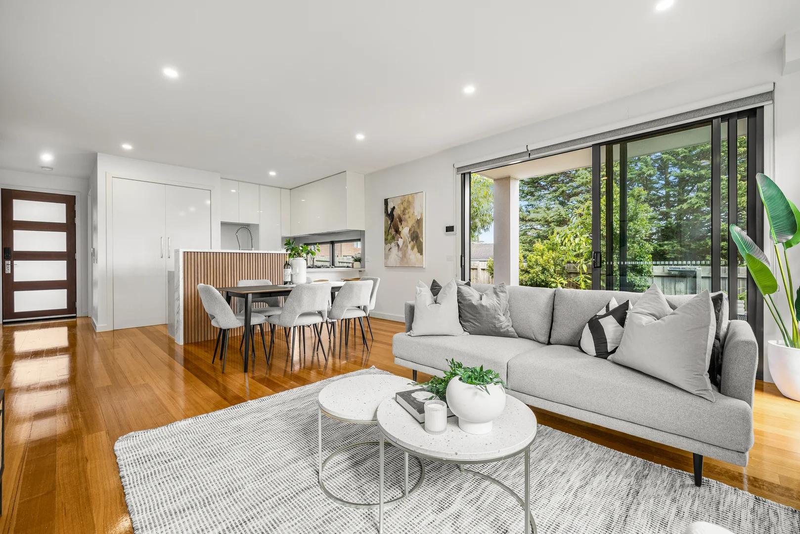 Description: Privately positioned at the rear, this contemporary home offers an outstanding combination of space, quality and privacy. Thoughtfully designed for modern living and effortless entertaining, the home showcases house-like proportions and low-maintenance ease, delivering superb comfort and flexibility for families, professionals and downsizers alike. Polished timber floors introduce the inviting open plan living and dining domain, where large sliding stacker-doors extend seamlessly to a covered alfresco and private backyard, creating the perfect setting for relaxed indoor-outdoor living. The sleek kitchen is both functional and elegant, featuring generous storage, stone benchtops, quality appliances and a breakfast bar. The well designed floorplan includes a spacious ground floor main bedroom complete with a walk-in robe and ensuite, offering excellent flexibility. Upstairs, two additional bedrooms are complemented by a central bathroom and a generous retreat, providing an ideal second living zone, home office or study area. Additional features include a double car garage, heating and cooling for year-round comfort, a ground floor guest powder room, separate laundry, high ceilings and a security system (Eufy Smart Lock, Front Door). Perfectly positioned within the coveted Pinewood Primary School and Mount Waverley Secondary College zones, this home enjoys walking distance to Pinewood Shopping Centre, Pinewood reserve, public transport including bus and rail services, and a range of key local amenities, delivering outstanding everyday convenience and connectivity. *Please Note* Buxton Real Estate may refuse to provide further information about the property should you prefer not to disclose your Full Contact Details including Phone Number. Photo id required upon entering the propert