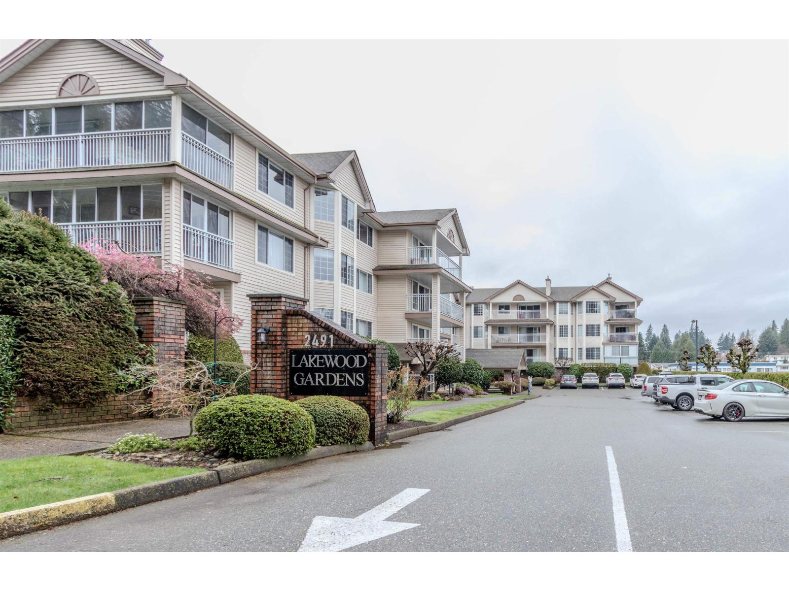 Outstanding renovations and outstanding location - across the street from Mill Lake & Seven Oak Mall! 1074 sq ft, 2 bdrm, 2 bath. Open living plan with white shaker custom kitchen, quartz countertops with undermount sink & eating bar, subway tile backsplash, undermount lighting, recessed ceiling lights, vinyl plank flooring thru-out moldings & trim, electric fireplace & ledgerock surround, light fixtures, levered door handles, complete bathroom renos with vanities, quartz, undermount sinks, tile surround, toilets, hardware- reno 5 years ago & shows newer.. Mstr bdrm with sliders to 24' x 7' enclosed deck (windows open) with N. Shore mtn views. Lots of storage space too! You can't get closer to Mill Lake & shopping. Great complex! Workshop, guest suite, storage on same floor. 55+, no pets. (32601224)