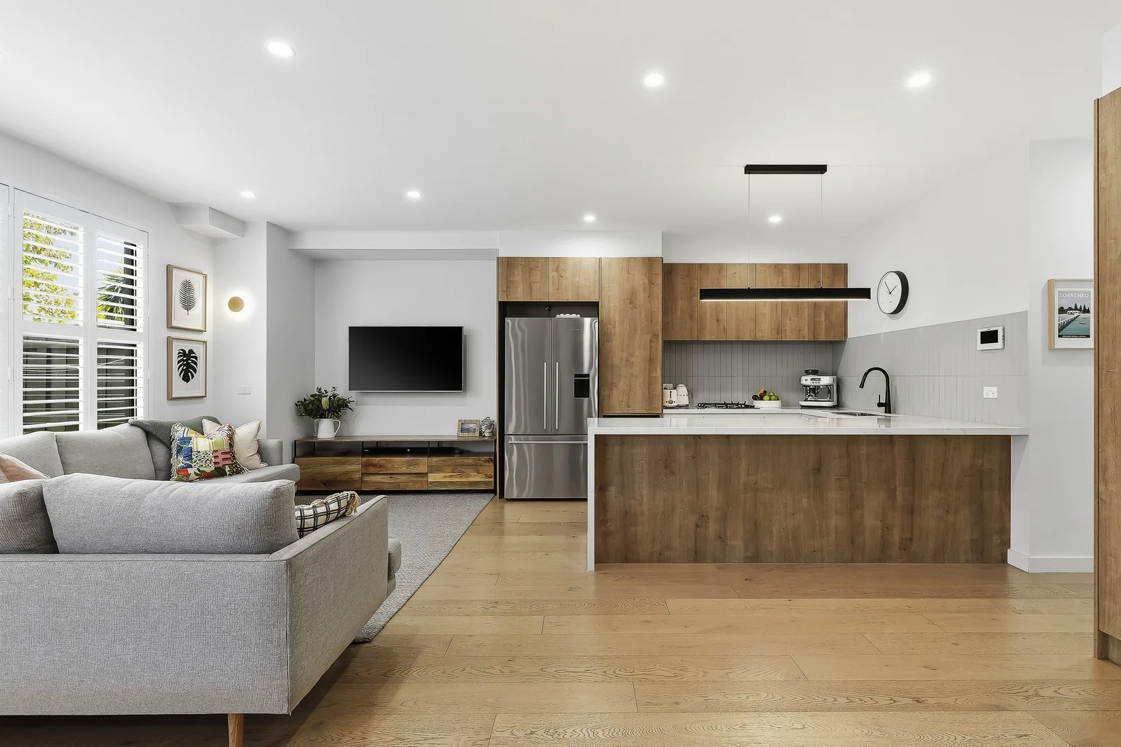 Description: Perfectly positioned just minutes from the beach, this stunning 4-bedroom, 3-bathroom plus study residence is turnkey and lifestyle ready. Enjoy the convenience of buses at your doorstep, plus golden stretches of sand and schools, cafes and the station all within a leisurely stroll. Step inside and immerse yourself in contemporary style with plantation shutters and VJ wall panelling, engineered timber flooring, custom cabinetry, soft floating sheers and premium wool carpet. Spacious open-plan living and dining is bathed in beautiful natural light through large windows, overlooking the garden and complemented by a designer stone kitchen with stainless steel appliances. Outdoors is impressively low-maintenance with artificial turf, where you'll love to entertain on the covered timber deck amongst private and peaceful surrounds. Luxurious accommodation includes an upstairs master ensuite bedroom with walk-in robe and tranquil leafy vistas, along with two generous robed bedrooms sharing the family bathroom. The fourth bedroom and third bathroom are enviably located downstairs. Sleek floor-to-ceiling tiling and matte black tapware star in all three bathrooms, while a versatile skylit study or extra sitting area on the upper level is fitted with custom cabinetry offering extensive storage. Complete with solar panels, split systems and ceiling fans throughout (including all bedrooms), this coastal sanctuary is finished with a pet door, internal entry remote garage and driveway parking.