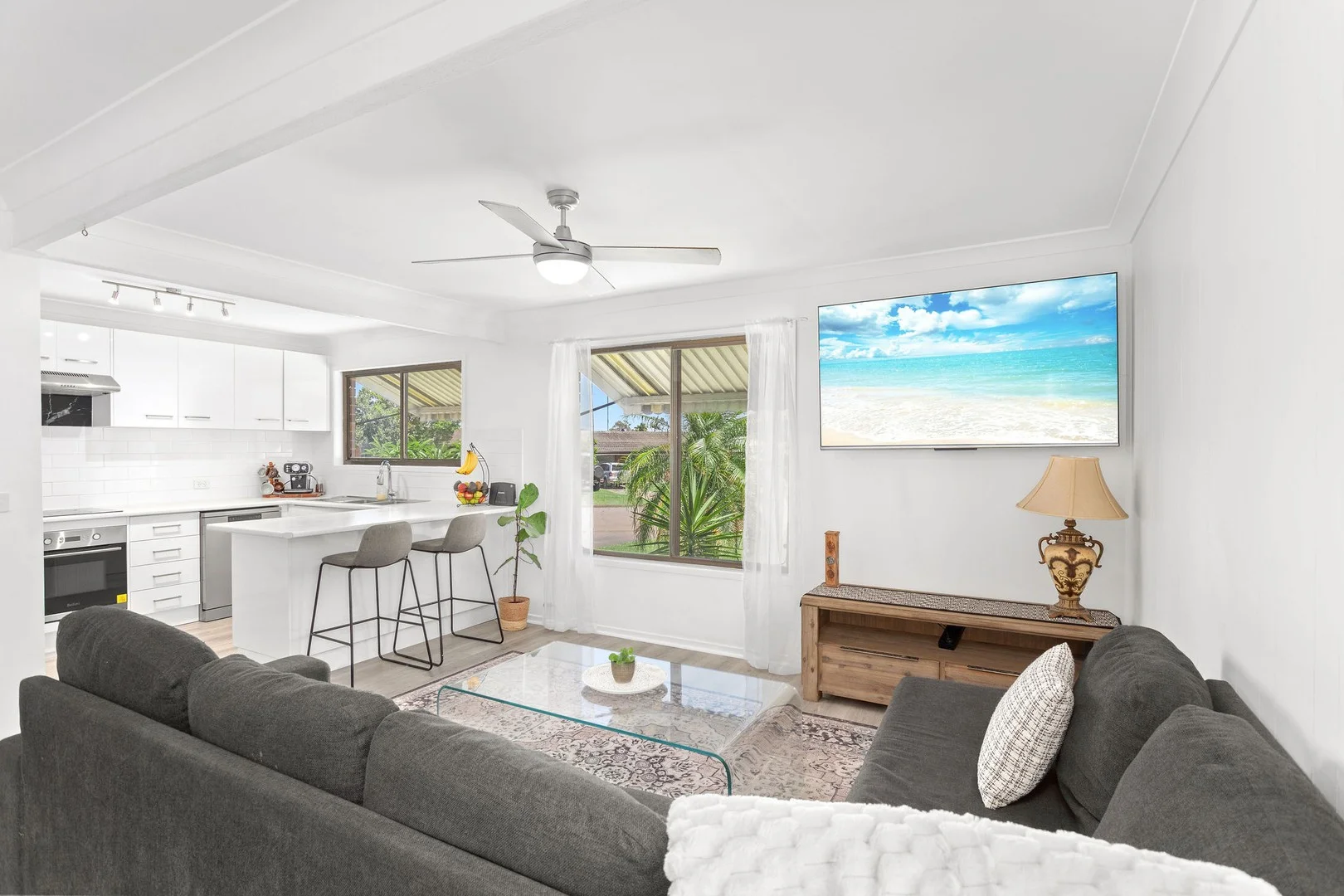 Description: This beautifully updated home offers the perfect combination of easy-care living, warm interiors, and a breezy Forster lifestyle. With its private corner block positioning, thoughtful layout, and inviting outdoor entertaining space, it's ready to welcome its next chapter. From the moment you enter, you're met with light-filled, open-plan living that's been designed for both relaxation and connection. The modern kitchen is a true heart-of-the-home, complete with stainless steel appliances, a breakfast bar, and plenty of storage, all flowing effortlessly into the living and dining zone. Each of the three bedrooms is well-sized with built-in robes, fresh carpet and neutral styling to make your own. The renovated bathroom is a true standout, complete with a luxurious corner bath and overhead shower, finished with a glass screen and modern matte black fixtures. The laundry is located off the hallway with external access offers practicality with direct outdoor access. Tucked neatly off the hallway, the internal laundry offers practicality with direct outdoor access. Out the back, you'll find a sunny, covered alfresco area, a private haven for relaxing or entertaining all year round. Whether it's morning coffee, weekend BBQs or quiet evenings at home, the space offers flow, function and a sense of calm. The yard is fully fenced and low-maintenance, with plenty of room to personalise or simply enjoy as is. With schools, shops, beaches and parks just a short drive away, this move-in-ready home suits first home buyers, downsizers and anyone looking to enjoy the best of Forster living minus the maintenance.