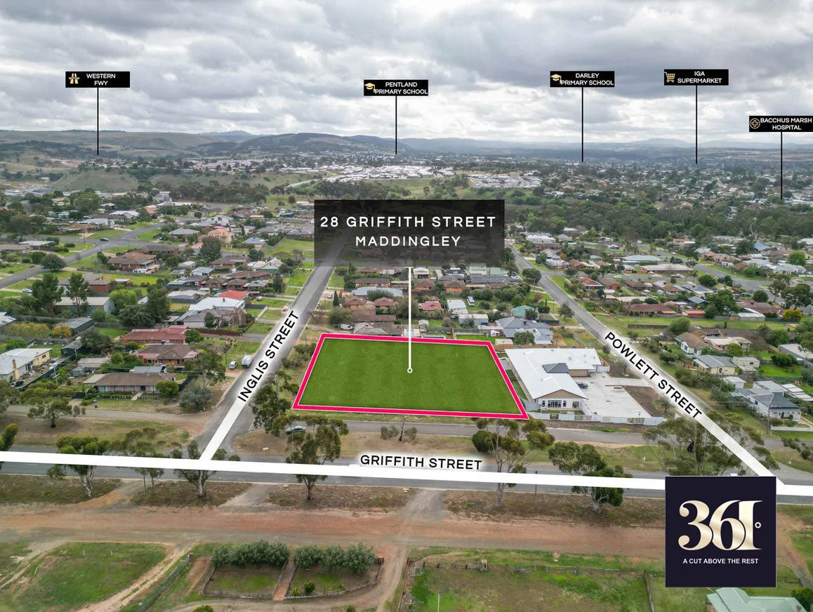 Description: 361 Degrees Real Estate Rockbank thrilled to present 28 Griffith Street, Maddingley, a rare permit approved multi-dwelling development site for 18 townhouses on 3,865 sqm of vacant land in the thriving and ever-growing suburb of Maddingley. Key highlights include: - Permit approved for 18 townhouses - Large corner landholding of 3,865 sqm* - Major lack of housing supply in Bacchus Marsh region - Amenity rich location, being within immediate proximity to Bacchus Marsh College (330 m*), Bacchus Marsh Grammar (750 m*), and Bacchus Marsh Train Station (850 m*) Situated in a rapidly growing area, this plot of land offers a blank canvas for your dream development. Lets take a closer look at what makes this property so special. If you're a developer, investor, or someone with a vision, don't miss out on this incredible opportunity. Contact us today to discuss the details, schedule a site visit, and explore the endless possibilities that come with owning this prime piece of land. DISCLAIMER: All stated dimensions are approximate only. Particulars given are for general information only and do not constitute any representation on the part of the vendor or agent. Please see the below link for an up-to-date copy of the Due Diligence Check List: http://www.consumer.vic.gov.au/duediligencechecklist