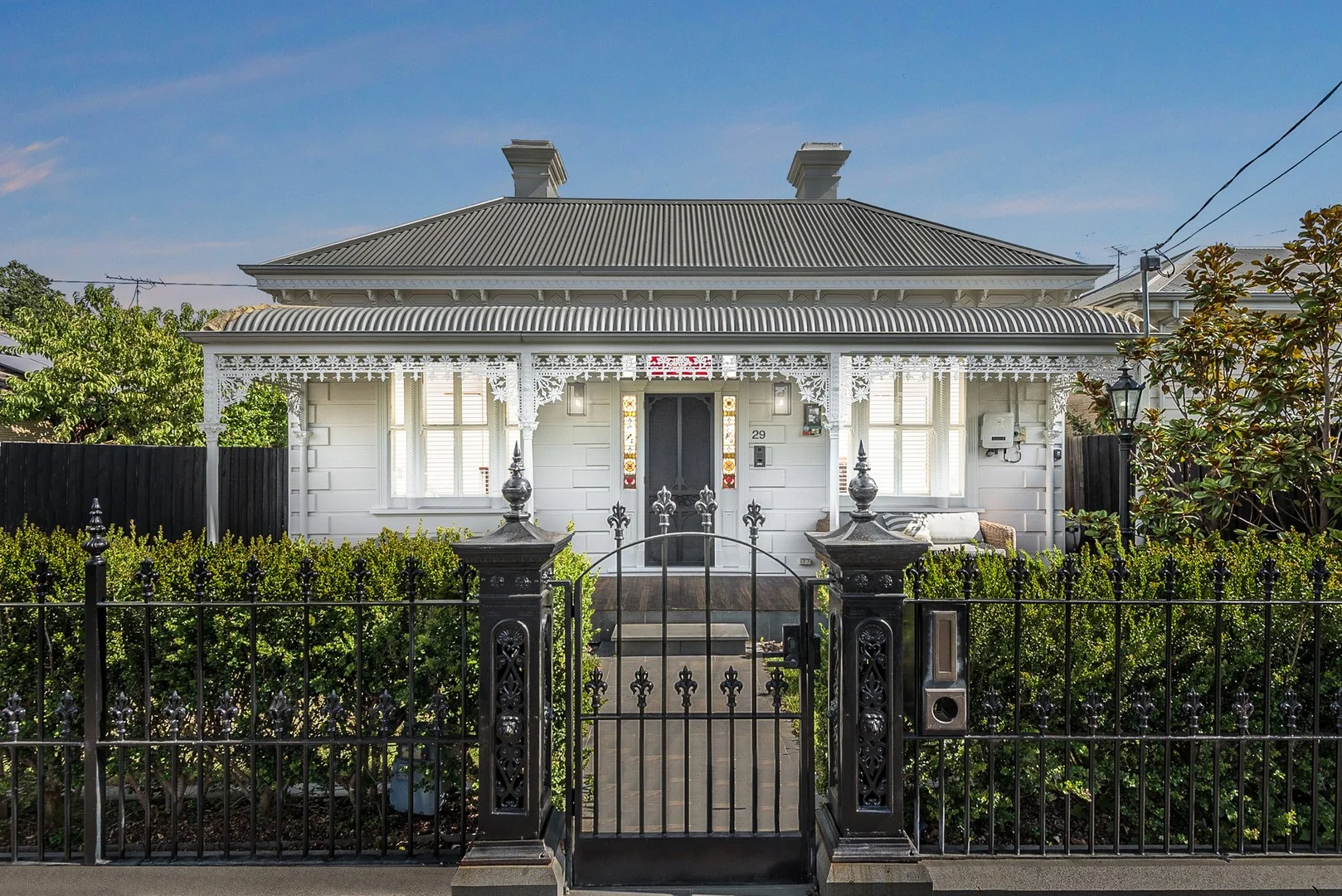 Description: Set in one of Geelong West's most tightly held and prestigious pockets, this magnificent Victorian home showcases timeless character, expansive family proportions and exceptional indooroutdoor living all just moments from vibrant Pakington Street, the Geelong CBD, the waterfront precinct and Geelong railway station for effortless Melbourne commuting. Behind a striking wrought-iron fence and lacework veranda, the home immediately captivates with soaring ceilings, intricate decorative cornices, chandeliers, polished timber floors and stunning original fireplaces. Beautifully preserved period features are seamlessly complemented by a high-quality contemporary extension, thoughtfully designed for modern family living while honouring the home's rich heritage. The flexible two-level floorplan offers five generous bedrooms, two bathrooms and multiple living zones. Upstairs, the luxurious main suite provides a true parents' retreat, complete with walk-in robe, private sitting area and a spacious ensuite. An additional upstairs bedroom offers versatility as a nursery, guest room or home office. Downstairs bedrooms are generously proportioned, each featuring built-in robes and original fireplaces with exposed brick accents, serviced by a beautifully appointed central bathroom with freestanding bath. At the heart of the home, a light-filled open-plan kitchen, dining and family domain connects effortlessly to the rear yard. The designer kitchen is equipped with premium Gaggenau appliances, including an integrated oven, steam oven, combination microwave oven and warming drawer. Stone benchtops, a substantial island bench, walk-in pantry and integrated two-drawer fridges positioned at the bifold servery create a true entertainer's environment, enhancing the seamless indooroutdoor flow. The adjoining courtyard is private and well-appointed, featuring a retractable veranda shade, gas heater and gas connection for BBQ entertaining. Expansive windows and doors from the kitchen, dining and living areas frame beautiful views across the landscaped backyard, reinforcing the home's exceptional indooroutdoor integration. The outdoor domain is equally impressive, highlighted by a solar- and gas-heated in-ground pool and spa both app-controlled framed by glass fencing and manicured surrounds. The undercover entertaining pavilion includes its own WC and outdoor shower, while external blinds ensure comfort and protection throughout the seasons. Additional features include: Long side driveway with roller door access to the backyard, ideal for secure off-street parking Gas ducted heating and multiple split systems throughout Freshly painted exterior Study nook Walk-in pantry Washer and dryer included (plumbed in) Secure, private landscaped yard Solar- and gas-heated pool and spa controlled via smartphone app High ceilings throughout Offering space, sophistication and lifestyle in equal measure, this is a rare opportunity to secure a landmark period home within one of Geelong West's most sought-after suburbs delivering enduring character, contemporary luxury and long-term value in a blue-chip location.