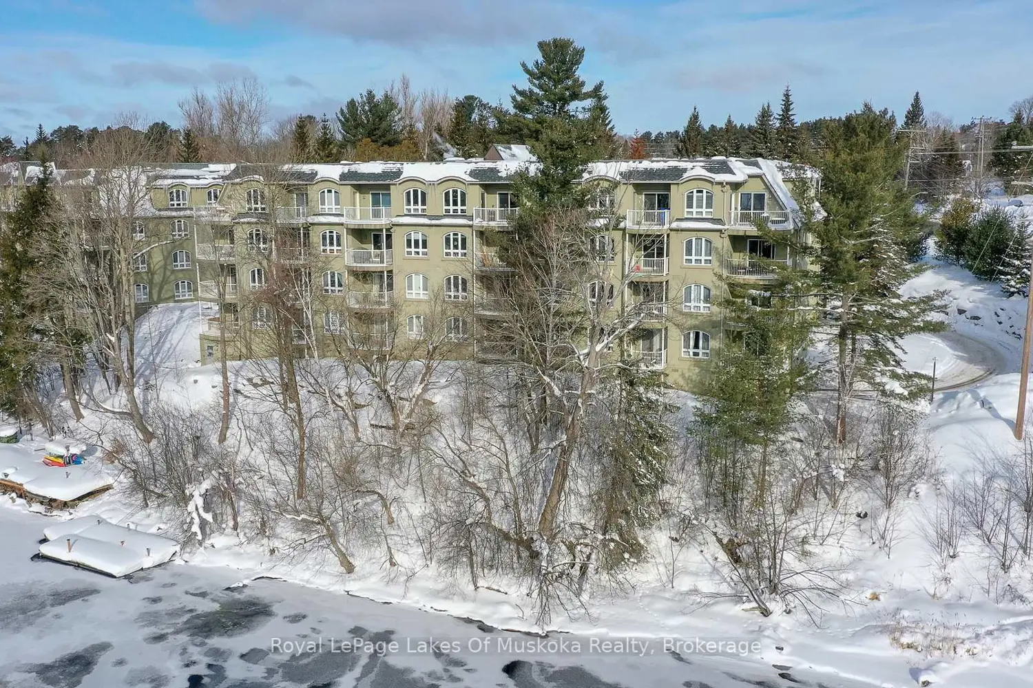 Muskoka Riverfront condo featuring 1 bedroom and a spacious den with an oversized closet and patio access. This condo provides a sunlit, spacious open floor plan with large windows and elevated views facing into trees from the primary bedroom and living space. The open air balcony is a great spot to enjoy your morning coffee, meals or a relaxing glass of wine. Algonquin landing is set directly on the Muskoka River allowing residents to utilize the shared dock to relax and revel in the riverfront vistas and watch the boats meandering slowly by on Huntsville's 40 mile boating system. Professionally landscaped gardens on treed grounds all a short stroll from downtown Huntsville and all the amenities you crave. The Algonquin Landing development has only 2 buildings and is the only waterfront condo building featuring underground parking in Huntsville. Very short walk to access Hunters Bay trail that provides a fantastic place to walk with scenic views and sandy shorelines. The building has a lovely sense of community and has a warm and friendly atmosphere. You can bring your furry friends with you, up to two dogs or cats with a weight restriction of each pet of 25lbs. Comfortable luxurious waterfront living without the worry and work of exterior maintenance. The building has been kept in fantastic condition with new shingles in 2021, underground parking garage floor redone, and exterior freshening including updated balcony. Historic downtown Huntsville, a sought after area to live featuring a live theatre, unique downtown, fabulous restaurants, art galleries, golf courses, alpine/Nordic skiing, walking trails, sport courts, and state of the art hospital.