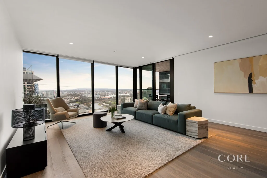 Description: Located on one of the highest levels of Melbourne's iconic Collins Arch, this luxurious sky residence offers breath-taking, uninterrupted views stretching from the MCG, Rod Laver Arena and Olympic Park, across to the Dandenong Ranges, the Yarra River, Southbank, and as far as the eye can see. The intelligently designed floorplan combines space, natural light and timeless finishes, with expansive open-plan living and dining framed by floor-to-ceiling windows and rich Oak timber flooring. The gourmet kitchen is beautifully appointed with sleek stone benchtops, premium Miele appliances and a full butler's pantry, catering effortlessly to both everyday living and entertaining. The generous main bedroom features a walk-in robe, a luxurious ensuite with freestanding bath and separate shower, and direct access to a private terrace with stunning views. Two additional well-proportioned bedrooms with built-in robes are serviced by a stylish central bathroom, powder room, and a discreet study nook, ideal for working from home. Additional features include two secure basement car spaces and a storage cage. Access is simple and secure, with a dedicated resident's lobby on Collins Street featuring a concierge and express lift straight to your level. Residents also enjoy access to a suite of world-class amenities just across the striking skybridge, all on your level for utmost convenience and only just a few steps away. These amenities include a 25-metre indoor pool, state-of-the-art gym, yoga studio, billiards room, private dining rooms and expansive lounge areas with sweeping views and sun-filled outdoor terraces. Above it all sits a spectacular three-level sky garden, offering additional entertaining and relaxation space above the city skyline. Perfectly positioned on a full island site with a commanding Collins Street frontage, Collins Arch offers immediate access to the city's premier dining precincts, luxury retail, major business and legal hubs, theatres, bars and unbeatable public transport connections. This is an exceptional opportunity to secure one of Melbourne's most prestigious sky residences in a landmark building unlike any other.