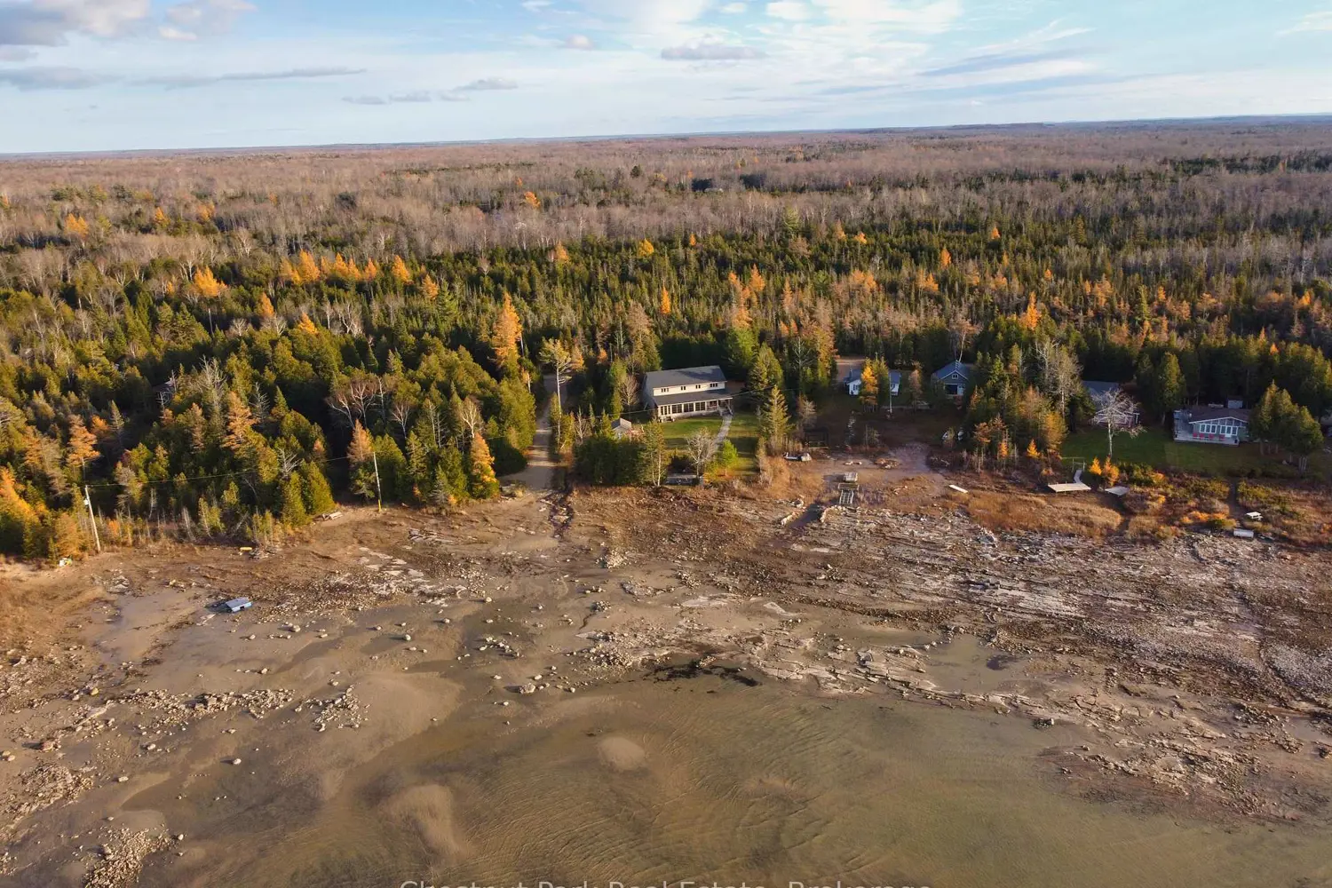 Waterfront Living on Lake Huron, 95 ft of Private Shoreline in Red Bay! Welcome to your dream lakeside retreat! This stunning 4-bedroom, 3-bathroom, 2-storey home offers 95 feet of pristine waterfront on the shores of Lake Huron, perfectly positioned to enjoy breathtaking sunsets over Red Bay. The exterior features timeless stonework and a covered carport, while inside you'll find a warm, inviting layout designed for comfort and relaxation. The main floor offers an impressive ceiling height just shy of 9 feet, enhancing the sense of space and natural light throughout. Both main floor bedrooms include ensuites, providing convenience and privacy for family and guests. The open concept living area centers around a cozy propane fireplace, perfect for curling up on cool evenings. A standout feature of this home is the expansive enclosed porch, measuring 34 feet by 10 feet, complete with a hot tub. This year round retreat is an ideal spot to unwind while taking in panoramic lake views. Whether you're entertaining or enjoying peaceful mornings by the water, this home captures the essence of serene waterfront living. Don't miss the opportunity to own a piece of paradise on Lake Huron, ideal as a full time residence or seasonal getaway!