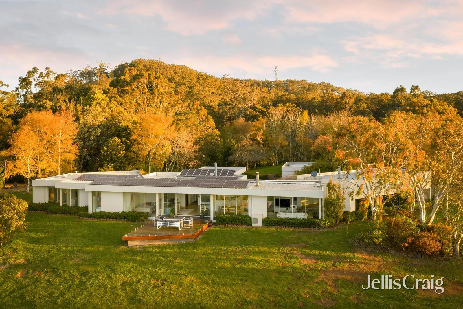 Description: Set against the dramatic backdrop of Mount Buninyong, this exceptional contemporary residence is a masterclass in design, comfort and sustainability a home where architectural elegance meets relaxed, family-friendly living. Cleverly oriented on the 10 elevated acres to capture sweeping northern light and unrivalled views across the surrounding landscape, the home unfolds through three distinct living zones, including a spectacular main lounge with wood fire and motorised blinds, ideal for effortless entertaining or quiet retreat. A second wood heater and a classic Rayburn wood stove add warmth and character, complemented by hydronic heating throughout along with underfloor heating in the beautifully renovated bathrooms. At the heart of the home, the sleek kitchen and large butler's pantry cater with ease to daily life or weekend gatherings, while the adjoining meals and family spaces open to a broad north-facing deck and a protected southern courtyard perfect year-round outdoor living. The thoughtful floorplan includes a main bedroom retreat with walk-in robe and renovated ensuite, separate children's wing, a study, generous mud room and a large, custom-designed laundry with a dedicated drying cupboard. Practicality is enhanced by ample storage throughout, a wine cellar/store room and extensive infrastructure that underpins a truly sustainable lifestyle, including solar panels, a 250,000L main water tank, a secondary 110,000L tank, and tennis court irrigation via overflow and drainage systems. Outside, fenced paddocks, established edible gardens, vegetable boxes, compost bins and fire pit reflect the property's connection to its environment a home designed for living beautifully, sustainably and in harmony with nature. The mod-grass tennis court offers the perfect family play space no matter of age! A double garage has direct access to the Southern court-yard and a separate shedding complex offers workshop and storage with power connected. Perfectly private yet moments from Buninyong village and within easy reach of Ballarat, 37 Hogarths Road West is a rare offering a home of architectural integrity, modern comfort and enduring family appeal on the slopes of one of the region's most scenic locations.