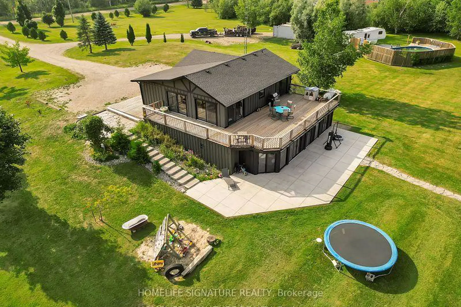 Escape to serenity your dream retreat (8.56 Acres) on the edge of Amaranth, just minutes from Shelburne. This unique 3 Bedroom Bungalow offers peace, privacy, and plenty of room to entertain. The open-concept layout offers a seamless flow into the living area, highlighted by a cozy electric fireplace and elegant herringbone-patterned porcelain tiles. Main floor features a custom kitchen with granite countertops, soft-close cabinetry, and premium appliances. The generous dining area showcases panoramic views eastern exposure overlooking a peaceful pond and southern views of your private woodlot. From here, walk out onto the spacious wraparound deck, ideal for morning coffee or hosting evening gatherings. Make the most of summer with a heated above-ground pool and its own expansive, enclosed deck perfect for outdoor entertaining.The fully finished walkout basement is a true retreat, boasting rustic barn board features, a wet bar, pellet stove, 3-piece bath, and a flexible family room that could easily be converted into an extra bedroom or home office. Unwind in the 3-season sunroom with a built-in hot tuba perfect space to relax, enjoy games,and soak in the peaceful setting.With stunning views of your own pond and shoreline, this property offers the best of both worlds: an entertainers haven and a quiet countryside escape. You can canoe, kayak, or fish at your leisure right from your backyard.The property comes with a 1-acre tree farm where the owner has planted over 500 young seedlings, offering both beauty and future growth potential.