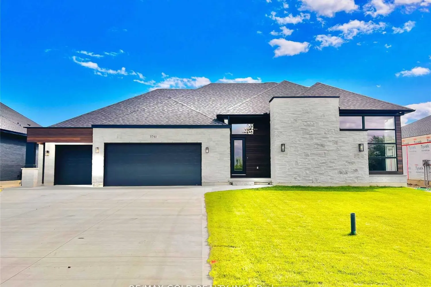 Move In Ready! Stunning One Floor Home With Expansive 3908 Sq Ft Of Finished Living Space. Enter Into The Expertly Designed Main Floor Flooded With Natural Light With Hardwood Flooring Throughout. The Sprawling Main Floor Features Great Room With Soaring 12 Ft Ceilings, Electric Fireplace With Wooden Mantel, Feature Wall With Custom Trim Work And Access To The Back Deck; Large Chefs Kitchen With Built In Oven, Gas Stove With Pot Filler, Wine Cooler, Quartz Countertops, Island With Breakfast Bar Including Waterfall Quartz Detail, To The Ceiling Custom Two Tone Cabinetry, Additional Prep Sink, And Direct Access To The Large Wrap Around Covered Back Deck; Three Generous Bedrooms Including Primary Suite With Backyard Access, Spacious Walk-In Closet Filled With Custom Storage, Ensuite With Double Sinks And Tiled Shower With Glass Enclosure, And Convenient Access To The Laundry Room; Convenient Two Piece Bath And Mudroom With Custom Cabinetry, Bench And Cubbies. The Large Covered Patio With Vaulted Ceiling And Soaring Gas Fireplace With Stone Surround, The Perfect Spot For Entertaining. Premium Finishes/Features Throughout Including Triple Car Garage, Concrete Driveway.