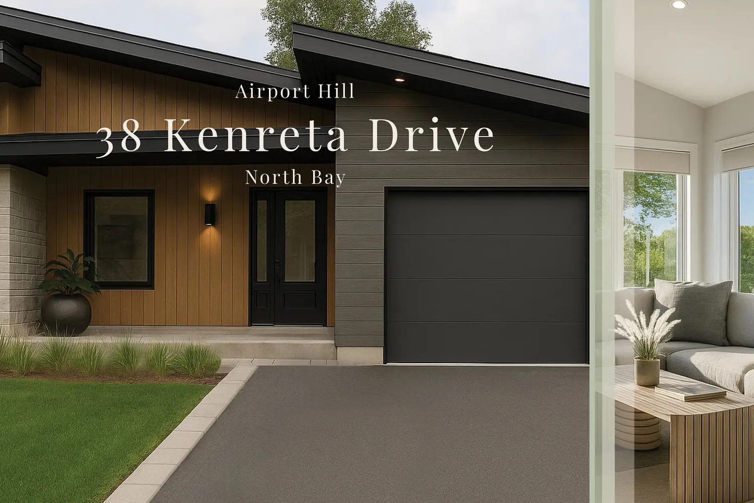 Design, function and elegance, 38 Kenreta Dr. by Bay Builders. To be built, fall 2026 possession date. *All images are for visualization purposes only. This spacious turnkey property overlooking the North Bay escarpment offers a move-in product inside and out, featuring 2+2 bed, 3.5 bath and attached garage. With approx 1,500 sf per floor there is much more than initially meets the eye. Step into the covered front entry and be greeted by a bright, inviting foyer with a sightline that draws you toward the scenic escarpment beyond. The open-concept main living area impresses with vaulted ceilings, eng hdw floors & expansive windows that frame the view. Custom kitchen, with pantry, quartz counters, island with bar seating, and stylish finishes. The spacious dining/living areas provide the perfect setting for entertaining or everyday living. Step outside to a generous covered balcony with glass rail, an ideal space for outdoor dinners or simply unwinding with a good book. The primary suite with escarpment views offers a 3pc ensuite with custom tile shower, large walk-in closet. The 2nd main floor bedroom serves as an additional suite with a full private 4pc ensuite & walk-in closet, ideal for guests or those looking to each have their own sleep areas. Additional main floor powder room for guests and mudroom/laundry with direct access to the garage. Escape to the lower level to find a large family room with walk-out to the backyard. 2 large bedrooms & 3pc bath. Large unfinished bonus room, ideal for a storage room, home gym, workshop etc., Forced air gas heating & a/c throughout. The lower level is roughed in for in-floor heating. Main floor 9' ceilings + vaulted area, lower level 8-1/2'. The exterior offers simplicity & peace of mind with a paved double driveway, finished entry, side yard & a sodded backyard area. List of optional configurations are available for review. Situated in one of North Bay's newest subdivisions, with Tarion Warranty offering peace of mind!