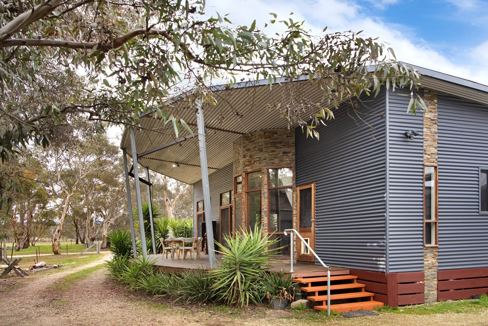 Description: In a quiet village setting just 12km from historic Maldon, this bespoke steel-clad home sits with quiet confidence on a level half-acre allotment, its design marrying rural practicality with contemporary flair. Inside, light and space are the prevailing themes. Polished timber floors run beneath soaring raked metal ceilings, while expansive windows frame the gardens and flood the interiors with natural light. A Norwegian wood fire provides a sculptural centrepiece to the open-plan living area, balanced by reverse-cycle air and double-glazing for year-round comfort. The kitchen has been designed as both a workspace and social hub, with stone benches, gas cooking, and stainless-steel appliances. Sliding glass doors dissolve the boundary between indoors and out, opening to a wide decked verandah complete with external awningsan all-seasons stage for entertaining or quiet retreat. Accommodation includes three serene bedrooms, each with thoughtful storage. The main suite offers a walk-in robe, ensuite with pedestal vanity, and its own climate control, while the family bathroom introduces a corner bath and separate shower for relaxed daily living. Sustainability has been built into the fabric of the property: a 4.8kW solar system, solar-electric hot water, and an impressive 100,000L of rainwater storage underscore the home's commitment to energy efficiency. A carport, workshop, and established low-maintenance gardens extend the functionality of the site. From here, village life unfolds with easemoments from the local general store, lake, and riverwhile Maldon's history, cafés, and culture are only a short drive away. This is modern country living, considered and enduring.