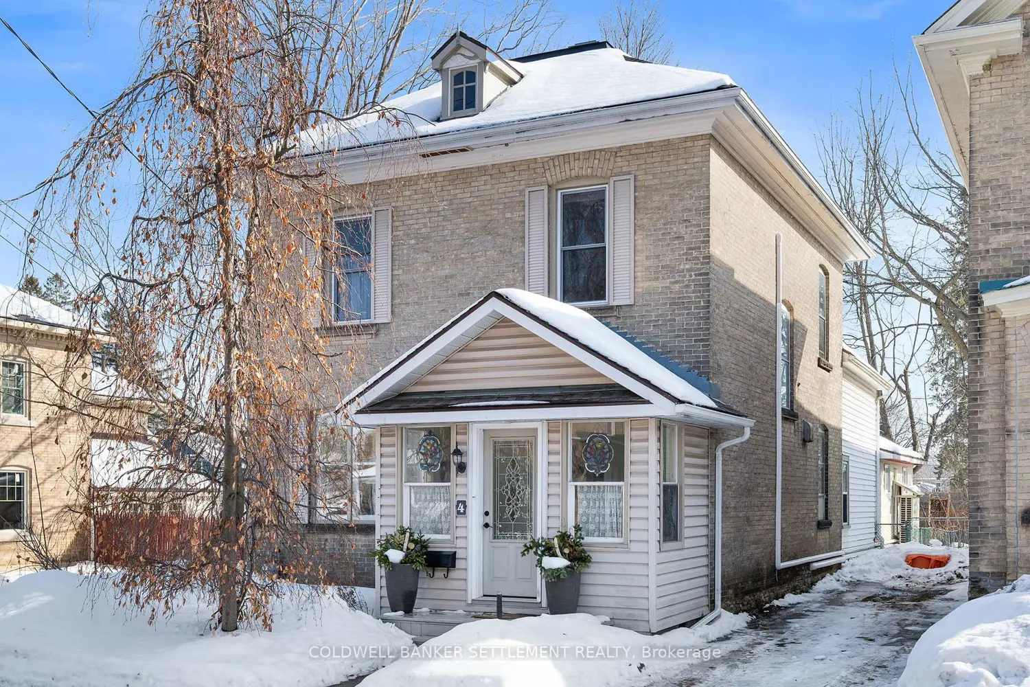 Handsome 1896 yellow brick two storey Victorian with all the character and charm we love about older homes, plus many modern updates to make it comfy. Easy walk to schools, and to downtown Perth, the beautiful shops, great restaurants, parks, library, farmers market, special event venues, etc. The closed in porch with unique curved ceiling welcomes guests and is a favourite sitting place of the owner. Elegant foyer with curved staircase to 3 bedrooms, renovated full bath with expansive closets and a "dressing room" for the primary bedroom. High ceilings, tall baseboards, large windows, crown mouldings, warm wood floors, spacious rooms - this home is a perfect setting for displaying your antiques, other treasures and artwork. The 2 storey addition at the back of the home was once a separate apartment and is a great guest suite, extra family living area, teenager space. The light filled family room offers enough space for casual dining and office areas as well as the sitting space,by the cozy gas fireplace. Also on the main addition level, newer three piece bath, utility area. Bedroom, bathroom with walk-in shower, large closet on the second level of the addition. The beautiful backyard is very private for an in town home - easy care with perennials, stone accents, patio. Protective carport has entrance to side porch and the mudroom/laundry area. The kitchen has been recently renovated with convenient drawer storage, granite counters, updated appliances. The owner has also updated the heating and cooling systems. A special home in a great location ready for you to move right in.