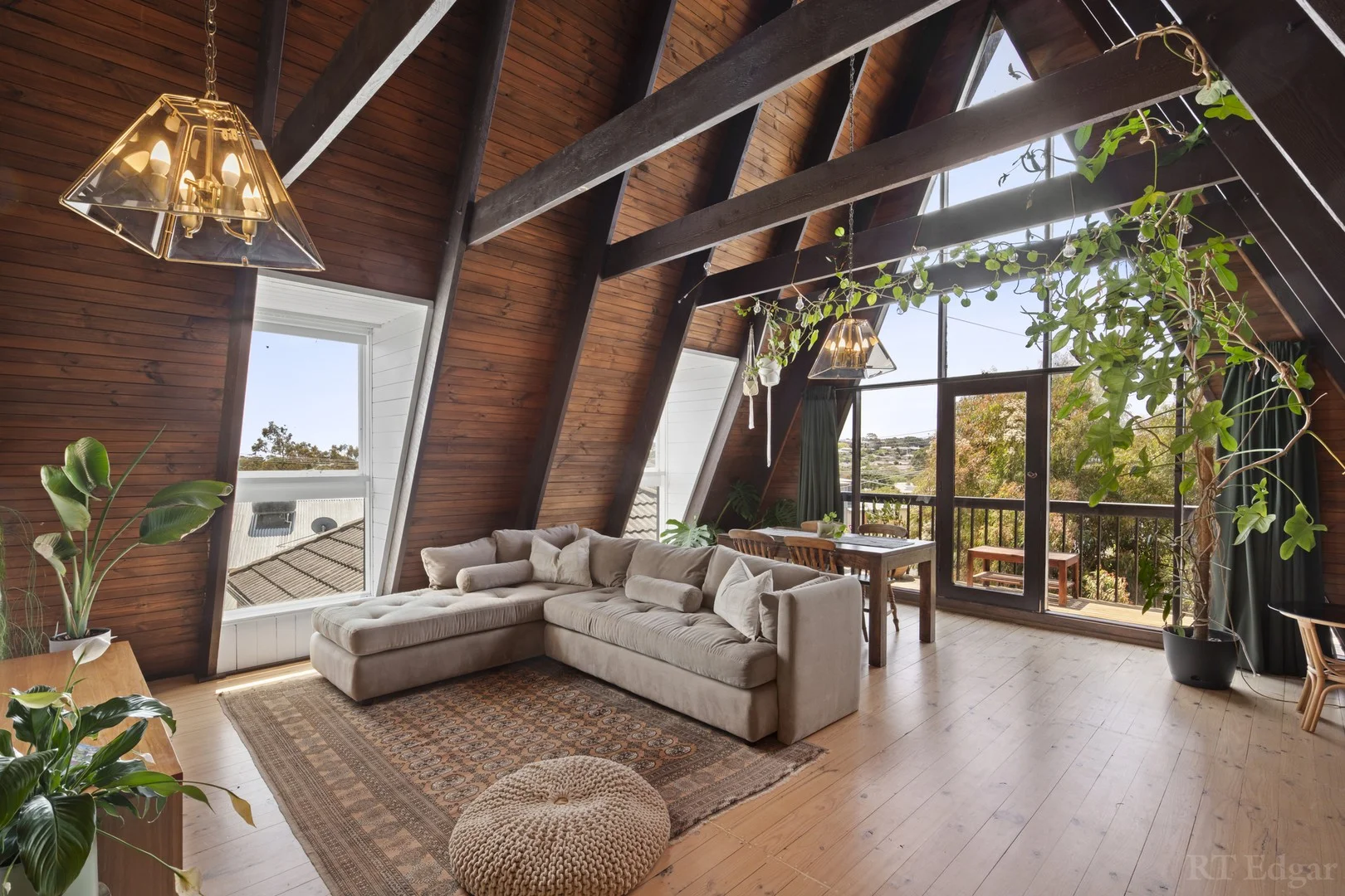 Description: An undoubted icon of the Clifton Springs streetscape thanks to its architectural A-frame design, this unforgettable home takes you away from the everyday, wrapping sensational indoor-outdoor living in timeless mid-century style. Rich in character beyond its cedar and brick-clad exterior, the three-bedroom residence unfolds in sublime fashion across three sympathetically updated levels, enhanced by soaring pitched ceilings, exposed brickwork, and an extensive use of timber. Step inside to discover a home for all seasons, where residents can enjoy winter evenings cosied up beside the wood burning fire, or utilise the warmer weather to host alfresco gatherings on the outdoor pavilion deck as children run freely on the north-facing backyard. Designed to entertain, a stone-topped kitchen is at the heart of the open-plan living domain, with this culinary hub delivering a 900mm Westinghouse oven, Fisher & Paykel dishwasher, and an open arch design that connects seamlessly to the dining area. Distinguished by its striking triangular silhouette with floor-to-ceiling glazing, a second living zone on the first floor offers sweeping bay scenes from its elevated vantage point, which are shared by the alfresco balcony and adjoining main bedroom complete with built-in robe and ensuite. Two further bedrooms, both with built-in robes, are positioned to the ground floor alongside a beautifully updated family bathroom flaunting a freestanding tub and full-height tiling, while a loft level rumpus room offers versatility for a teenage retreat, fourth bedroom, or an additional work from home space. A dedicated office with separate entry is ideal for the home-based professional, while split system air-conditioning and a single garage with rear pull-through access further befit the home's desirable location directly opposite the local shopping strip, and mere minutes from the region's premier wineries, beautiful bay beaches, and Drysdale village amenities. Whether you plan to live in permanently, enjoy as your own seaside holiday escape, or capitalise on its proven history of short-term rental accommodation, you can be confident this property is a true one-of-a-kind.
