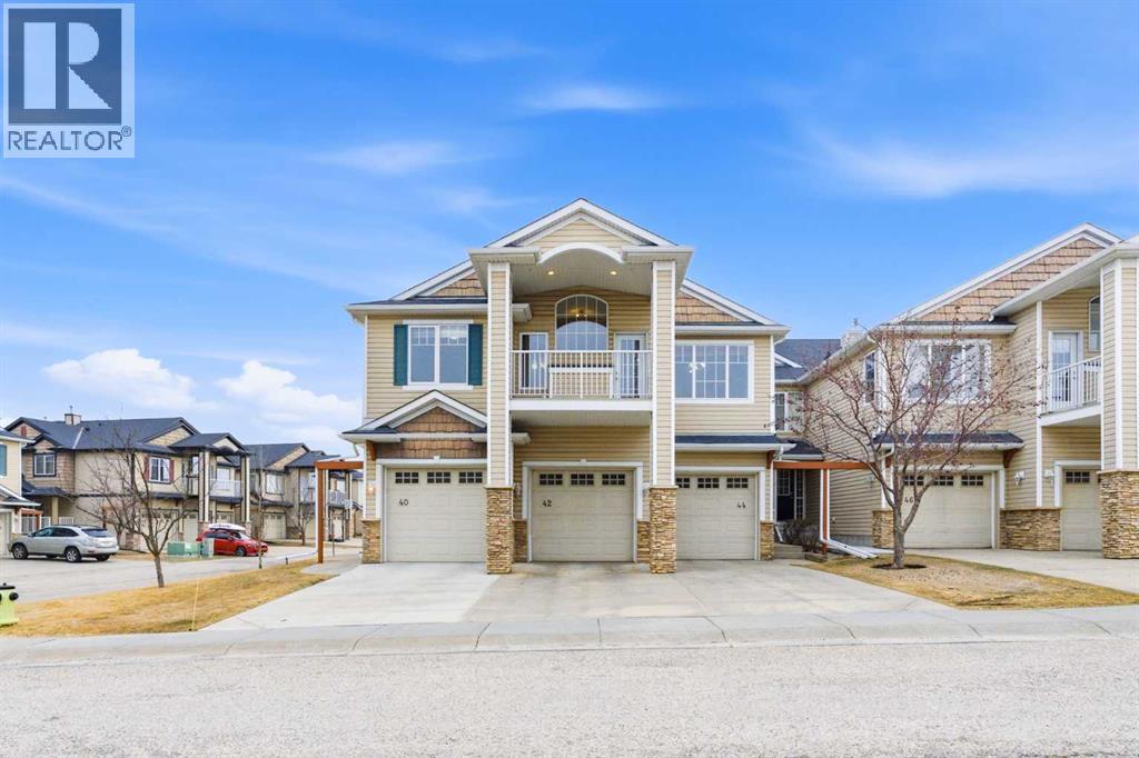 Welcome to this stunning bungalow-style townhouse in the highly sought-after community of Royal Oak, ideally located close to schools, shopping, transit, and all amenities. This bright and inviting home features an open-concept floor plan with vaulted ceilings and large windows throughout, creating an airy, elevated living space with no one above you. The spacious living and dining area leads to a private, generously sized patio with sunny south and southwest exposure. The well-appointed kitchen offers ample cabinetry, a center island, newer Whirlpool appliances (just 2 years old), a corner pantry, plus an additional second pantry for exceptional storage. This home includes: 2 bedrooms, including a king-sized primary retreat, second bedroom with walk-in closet, full bathroom, in-suite laundry, and rough in for fireplace. Additional features: Corner unit with extra windows for abundant natural light, single attached garage, plenty of visitor parking, low condo fees and common greenspace directly behind the unit. Enjoy the convenience of walking distance to schools, shopping, and the new YMCA, with quick access to transit including a direct bus to the Tuscany LRT station. Just 15 minutes to downtown and easy access west to the mountains. This is elevated living at its finest—don’t miss this exceptional opportunity. (31923617)