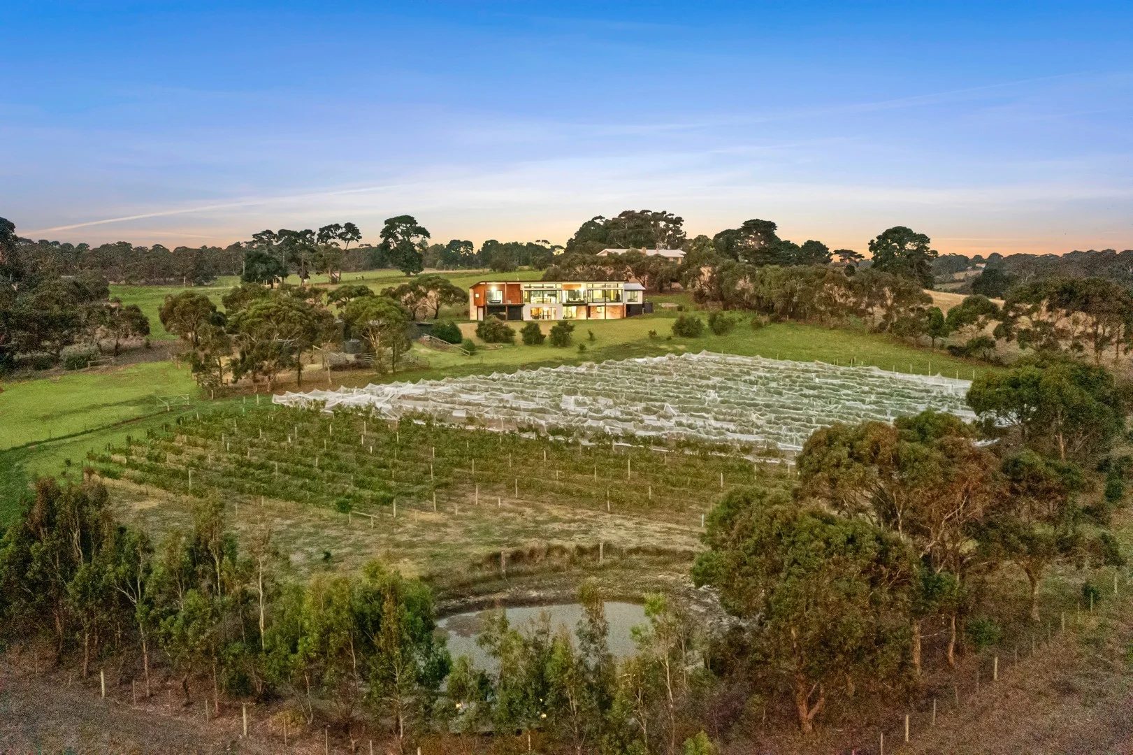 Description: The Feel: Set to the picture-perfect aspect of the surrounding natural landscape, 'Mulberry Hill', a premium 38-acre (approx.) property, presents an unmissable lifestyle opportunity in the heart of the Bellarine Peninsula. More than just a spectacular setting, the property is part vineyard, part grazing, and part natural wetlands, all presided over by a luxury 5-bedroom residence. Ensuring a lifestyle of absolute serenity at the end of a quiet country lane, this is a home designed for both interior and poolside entertaining where the lines between inside and out fade against a backdrop of rolling hills and coastline views. In a place where your alarm clock is the call of local birdlife and your evenings are spent sipping the only locally produced Tempranillo, this could be your new every day. The Facts: -Luxury custom 5-bedroom, 4-bathroom residence, set on an elevated position of 38-acres (approx.) -Down a long, eucalypt-lined driveway and over a bridge, the sense of serenity is evident from the outset -Showpiece home set over 2-levels, designed to maximise mesmerising country-meets-coast vistas -Radiant natural light, timber finishes & Dunkeld stone blend beautifully with the surrounding landscape -Upper-level kitchen, living & dining hub has been designed for laidback luxe living -Here, a soaring ceiling & full-height glazing allow the views to take centre stage -Cosy up in front of the Cheminees Philippe fireplace as the sun sets over the Barwon Heads Bluff -Multiple options for alfresco living provide further places to take in the views, in any season -Main deck overlooks the swimming pool & spa, creating a perfect oasis for relaxation -Heat banks, ceiling fan, misting sprays & 104cm projection ensure year-round entertaining -All your hosting requirements are taken care of in the sleek stone kitchen with walk-in pantry -A luxury lodge style ambience permeates the ground floor rumpus room, complete with bar & wood fire -Accommodation is headlined by a view-swept main bedroom with WIR, twin vanity ensuite & private balcony -In a separate wing, a guest suite (BIR/ensuite) precedes 3 further bedrooms & family bathroom -A downstairs studio with bathroom & kitchenette adds flexibility to the floorplan, ideal as a gym or semi self-contained living space -Comfort & security is assured with reverse cycle a/c, double glazed windows, CCTV & Sonos surround sound -A 20-panel solar electricity system ensures the home treads lightly on the environment -Adding to the lifestyle appeal, the property incorporates 8 paddocks, allocated to livestock grazing, seasonal wetlands & on-site vineyard -The vineyard features 870 Tempranillo vines & 280 Chardonnay vines -Can be self-managed or assisted by local winemakers, with established relationships in place -The 2023 yield produced 103 dozen bottles of red Tempranillo & 38 dozen bottles of temp rosé -Two main sheds with machinery storage plus stables, hot water, shower & worker's toilet -Expansive surrounds also include a deluxe chicken house with electrified yard, vege gardens & orchard -Practical inclusions: bird nets & vine wind covers plus 75,000L water tanks with pumps to vineyard & orchard -Also includes 4yo Kubota 31.5hp tractor with mowing deck, 400L BA sprayer, SCAG zero turn mower & stock trailer -A floodlit pond with resident silver perch provides a picturesque evening display -Ponds and billabongs also provide sanctuary for ibis, egrets, plovers, wild ducks & spoonbills -Other local birdlife includes eastern parrots, cockatoos, black winged kites, harriers & a pair of wedge tailed eagles -An enticing country quiet, urban close lifestyle is also on offer, just minutes to the Ocean Grove village & beaches -Proximity to Wallington Road ensures a seamless Geelong commute in less than 30mins -A perfect blend of luxury, lifestyle & natural beauty your dream retreat awaits! The Owner Loves. "There's no better place to be than on the alfresco balcony, watching on as the sunset paints the sky, all while enjoying a glass or two of homegrown rosé that's so refined it won a medal at this year's Geelong Wine Show. It's a truly magical lifestyle." *All information offered by Bellarine Property is provided in good faith. It is derived from sources believed to be accurate and current as at the date of publication and as such Bellarine Property simply pass this information on. Use of such material is at your sole risk. Prospective purchasers are advised to make their own inquiries with respect to the information that is passed on. Bellarine Property will not be liable for any loss resulting from any action or decision by you in reliance on the information.