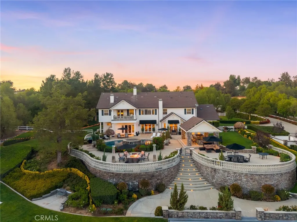 Experience refined country living in this extraordinary luxury estate in Temecula Wine Country, offering approximately 6,887 square feet of thoughtfully crafted living space on five usable acres. The estate features a main home and a guest home with the main home having six spacious bedrooms, including two on the main level, and five and a half bathrooms. The oversized kitchen impresses with a striking large granite island, Thermador double ovens, and a Sub-Zero refrigerator. Hardwood flooring enhances the main living areas, while a carpeted staircase leads to the second level, where hardwood floors continue alongside four additional bedrooms, three bathrooms, a laundry room, and a bonus movie room. Step outside to a true backyard retreat, complete with a resort-style pool and spa, outdoor kitchen, and beautifully landscaped patio. Dramatic, castle-inspired stairways lead to a basketball court, detached garage and pasture with barn and arena. A private ADU guest home sits above the garage, offering a versatile space ideal for guests, extended family, or potential rental income, with convenient RV parking nearby. The expansive, flat acreage also provides ample opportunity for equestrian use or additional outdoor amenities. This exceptional property offers a rare blend of luxury, privacy, and endless potential in one of Southern California's most desirable settings. For added convenience, RV parking with a dedicated plug is located adjacent to the ADU. This 6 bedroom home is located in Country Road Estates which consists of 128 - 5 acre parcels just on the edge of Temecula Wine Country. The location is super convenient to town and centrally located to some of the best schools Temecula has to offer. Neighboring homes features large acreages, groves and vineyards. Just minutes from highly desirable Linfield Private School and Saint Jeanne De Lestonnac.