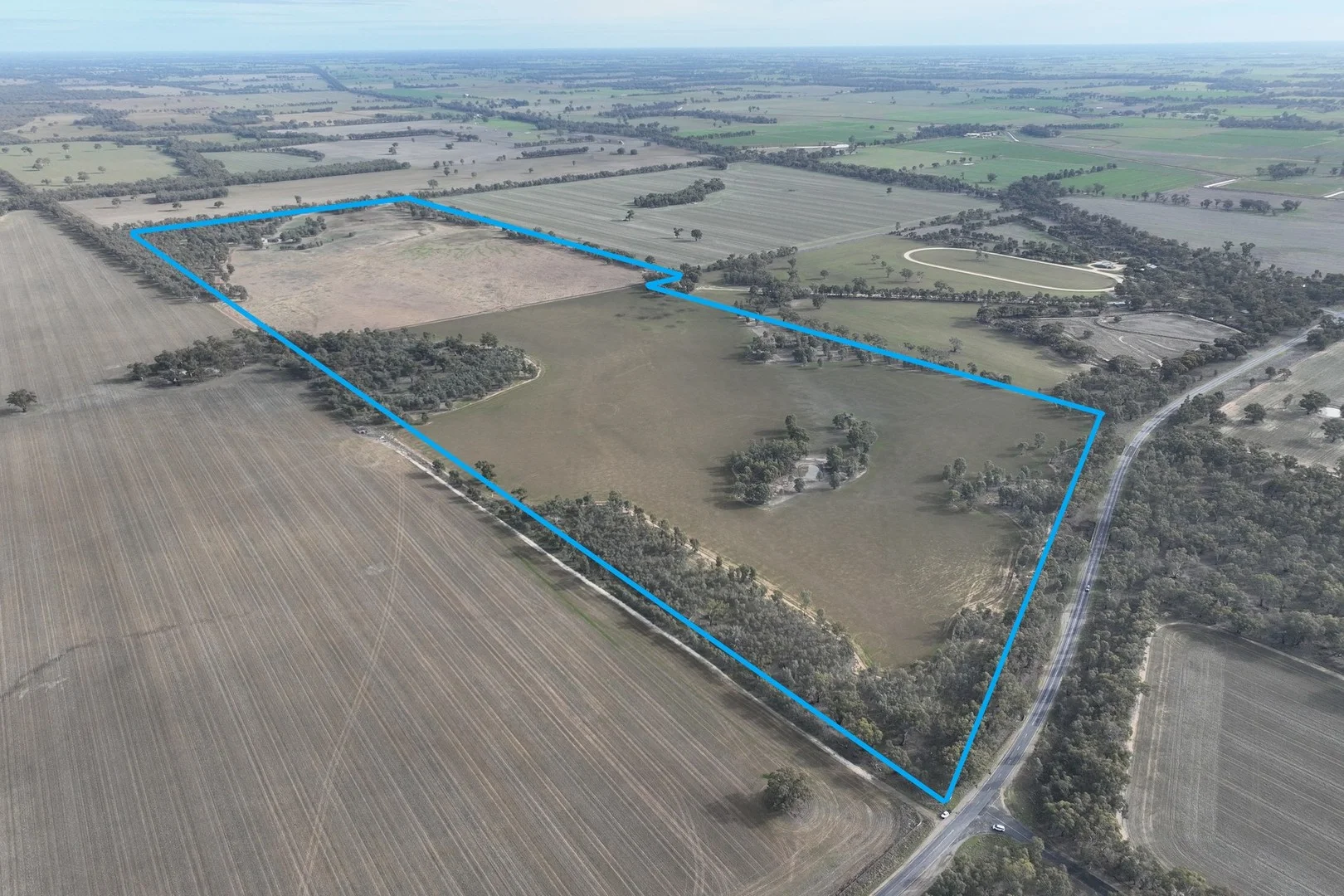 Description: Size: Approximately 230 acres Land Type: Dry cropping ground with good treed areas, ideal for wintering cattle. Location: Just a 2-minute drive south of Nathalia, offering easy access to local amenities and services . Ideal For: Perfect for current operating dairy farmers or fodder growers seeking additional outblock land or some looking to run a few beef cattle Key Features: Dual Road Access: One access point from the Murray Valley Highway, offering convenience for transport and equipment. Water Infrastructure: Includes a S&D Bore with solar pump for reliable water supply, along with two dams for stock water. Gravity Feed Tank: Set up to supply water to stock troughs. Fencing: Fencing is in good shape, ensuring secure containment for livestock. Versatile Land Use: The combination of dry cropping ground and treed areas makes this property suitable for winter grazing, fodder production, or expanding an existing dairy operation. This property is well-suited for those looking to expand their agricultural operations or invest in a productive outblock. The proximity to Nathalia and essential infrastructure adds to its appeal for both farming and livestock management .