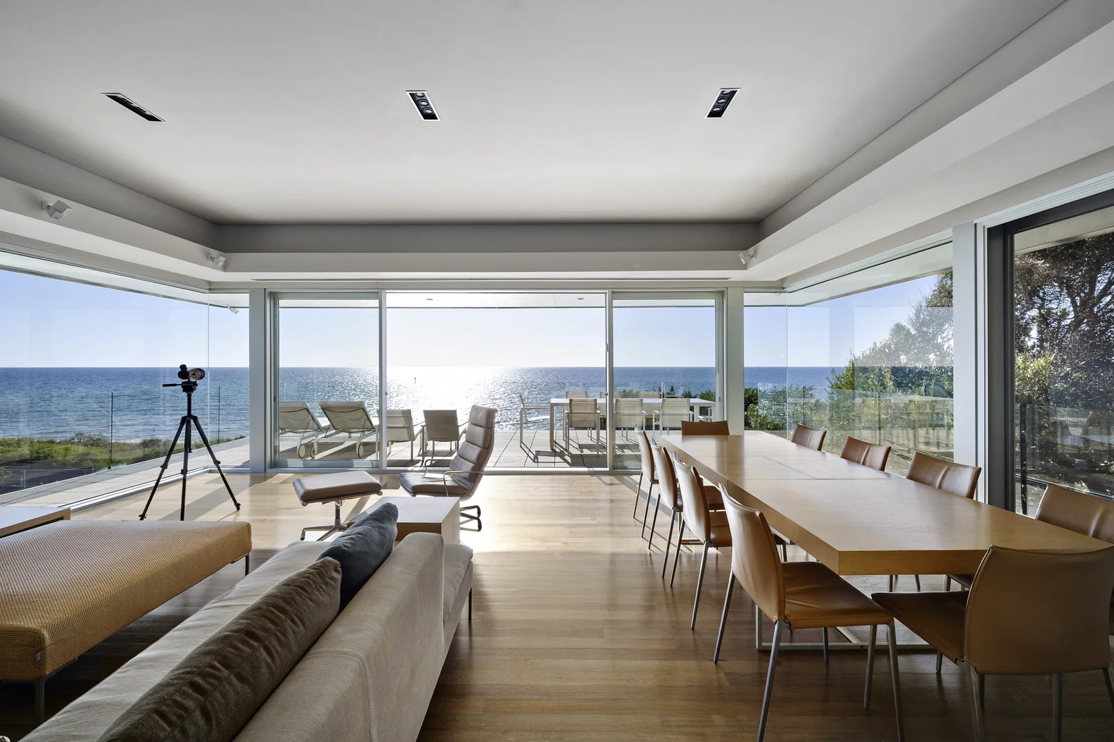 Description: Expressions of Interest close Monday 13 April 5.00pm (unless sold prior) Few properties on the Mornington Peninsula hold such prized seclusion and absolute beachfront privilege. Concealed behind a tall garden of magnolia, olive, and a towering date palm, this SJB-designed residence rises directly from the dunes. Tiered platforms and sweeping glass horizons frame uninterrupted views from Davey's Bay and Oliver's Hill to the city skyline and beyond. The design is deliberately discreet, revealing nothing until the secure gates open and the home's striking form appears, seemingly suspended above the coastline. Light and outlook command the interior from the moment one steps beyond the threshold. Premium Tasmanian oak floors run the length of expansive living and dining spaces on both levels, each opening wide to terraces and the sea beyond. Each level features a gourmet Miele kitchen, each fitted with twin dishwashers and cooktops, with the lower floor comprising dual ovens to support large-scale entertaining. Generously sized bedrooms bring a sense of retreat and quiet, each fitted with custom robes, including a guest bedroom with semi-ensuite access and an exceptional bunk room on the ground floor. Above, the main bedroom suite opens to its own private balcony, featuring a full wall of bespoke robes and a lavish en-suite, creating a serene and enticing hideaway. This is complemented by a concealed pivot door at the base of the stairs, enabling each level to function as a fully self-contained residence if desired. Comprehensive appointments include ducted reverse-cycle heating and cooling, an integrated sound system, motorised blinds, remote external awnings across both levels, video intercom and a monitored alarm with CCTV. Double glazing, irrigation and abundant indoor and outdoor storage enrich relaxed coastal living year-round, while a remote-access double carport provides rare off-street parking. Direct access to the sand confirms its status as one of the very few true beachfront addresses, just minutes from Frankston's dining and shopping precinct, Mount Eliza Village and city-bound transport.