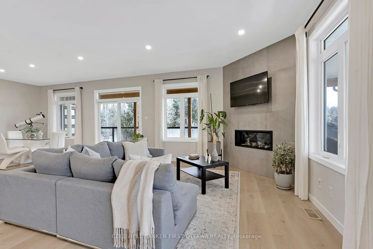 Outstanding. With smooth clean lines this 2022 home offers a sophisticated presence and, its unparalleled construction creates a wealth of efficiencies. The exterior steel siding is eye catching with its attractive slate-hued finish, accented by earthy warm cedar. The design elements blend flawlessly into 3 peaceful country acres. Step inside to the sleek foyer featuring white bright décor enhanced by double closet's charcoal glass panels; elegance added by the porcelain floor and glass chandelier. Flooring thru-out 3+1 bed, 2 full bath home is porcelain tile plus, luxury vinyl plank with cork cushioning for sound absorption - you will appreciate this with every step. Ceilings 9' high, light cascades inside thru big windows and living spaces insulated for sound separation from the bedrooms. Livingroom linear propane fireplace is surrounded by showcase porcelain wall. Impeccable gourmet kitchen most welcoming with Cambria quartz countertops, custom Deslaurier cabinetry, generous breakfast bar and premium Bosch appliances including two built-in ovens. Adjoining butler's pantry and sitting area. Primary suite calming retreat with two large closets and luxurious 5-pc ensuite porcelain floor, two-sink quartz vanity, rainhead glass shower with body-spray tower and deluxe soaker tub. Two more bedrooms and well-appointed 4-pc bathroom also with porcelain floor, quartz vanity, touchscreen mirror and rainhead shower with body-spray. Lower level 8' ceilings, R22 insulation and potential for in-law suite with rough-ins for kitchen and bathroom. From lower level, direct access to double attached garage with hookup for overhead propane heater. Adding to home's ultra-modern design and commitment to quality is superior steel roof with protective membrane & R60 insulation. Steel fascia has recessed soffit lighting. High energy-efficient Kohltech windows & propane furnace. Underground hydro line from road to home. On paved township road. Cell service & hi-speed. 10 mins Perth.