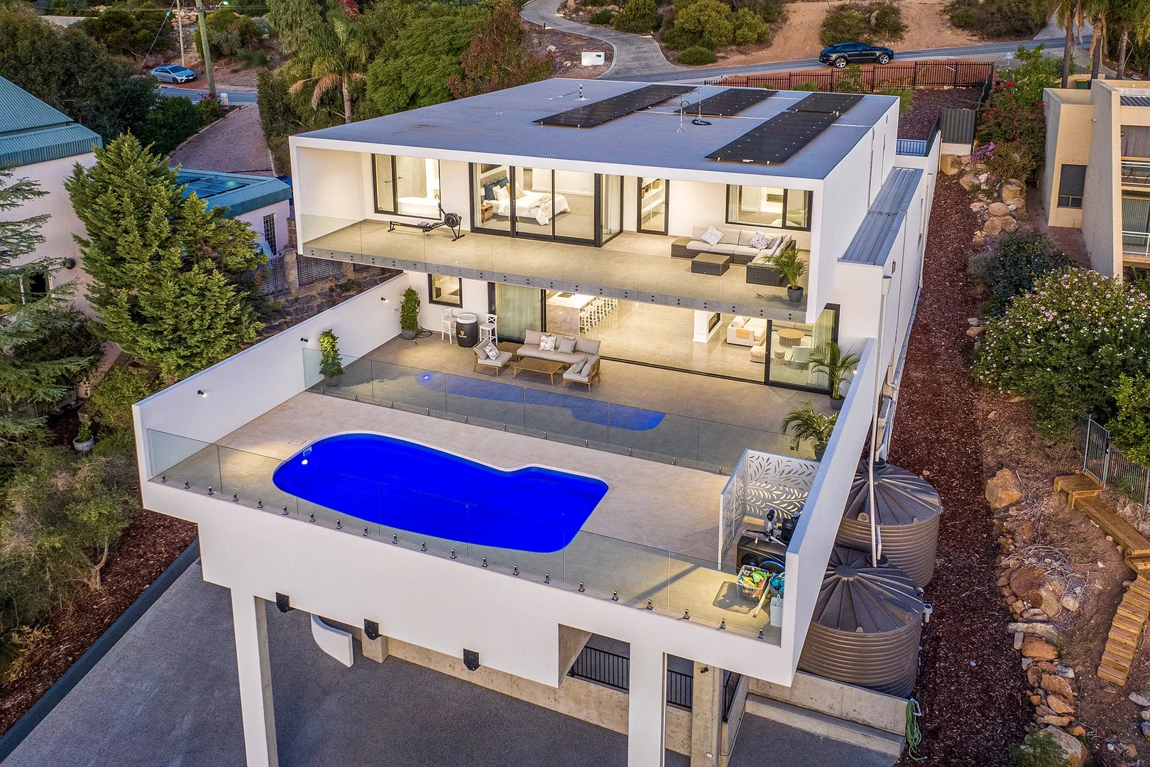 Description: PRIVATE INSPECTION ONLY CALL MERYL CARTER 0438 444 000 Presiding over a prized escarpment and hovering high above a breathtaking natural landscape, this residence is a masterclass of modern industrial charm. A bold beauty that cantilevers out from a sprawling 2,074sqm allotment, it's not so much the sleek, clean-lined design that defines it; instead, it's the picture-perfect panoramas. Promising you a front row view to an ever-changing, mesmerizing outlook, uninterrupted vistas stretch languidly towards the horizon. By day, it offers birdsong in the treetops, before spectacular sunsets set the sky ablaze, giving way to a glittering sea of lights that illuminate the night sky. Features Crafted to an uncompromising standard, this architectural residence is a feat of full concrete construction, with suspended slabs and reinforced concrete walls ensuring enduring strength and striking form. Sprawling across two levels linked by an internal lift it offers the rare ability to be sleek yet welcoming. Honed concrete floors are softened by the warmth of Polytec Natural Oak cabinetry and the engineered timber treads of a custom floating staircase. It's also designed for effortless indoor-outdoor living and entertaining, showcasing vast full-length alfresco areas that comprise a wide upper-level balcony and sprawling terrace that wraps around a sparkling pool. Furthermore, each capitalizes on the enchanting outlook, gazing upon greenery by day and a shimmering expanse of city lights by night. Family Living Everyday functionality fuses with refined elegance, culminating in a showpiece kitchen, living and dining zone. Sprawling, sophisticated and serene, a striking Dekton waterfall edge island bench underpins the gourmet kitchen with a full scullery, complemented by a cozy two-way fireplace for warmth and ambience. Stealing the spotlight, however, is the seamless connection between internal and external zones. Simply peel back the supersized stackable glass sliding door to marvel at the magical views and make hosting guests an effortless affair. Outdoors, the deep blue of the pool dazzles against the sunshine, evoking the sensation of an endless holiday. The four ensuite bedrooms are equally impressive. Led by a luxe master suite with a dressing room and ensuite that boasts a freestanding bath against a large-scale picture window, allowing you to soak in the views and soothe any stress. A plush home theatre finished with soft Cavalier Bremworth carpet provides the ultimate movie night experience, and the inclusion of a dedicated study, mudroom, generous laundry and abundant storage ensure every family need is met with style. Sustainability is seamlessly woven in too, thanks to a 10kW solar system with 32 panels. Parking A driveway leads to a double garage before winding down to a large carport. Here, accommodate additional vehicles, your caravan, trailer or more. Schools Families will benefit from being in the catchment zones for sought-after Falls Road Primary School (1.6km away) and Lesmurdie Senior High School, accessible in 3.1kms. Other highly regarded education institutions are within close proximity too, with Mazenod College 2km away and St Brigid's College 2.5km by car. What's Nearby Perfectly positioned for those who crave peace and privacy, this exceptional residence enjoys a privileged location adjacent to Nelson Crescent Reserve. Nature is quite literally on your doorstep, with Lesmurdie Falls just 500m away. Hike the trails in Winter and through Spring to witness the waterfalls at their magnificent best, especially while the wildflowers are on display. Everyday conveniences and weekend adventures are effortlessly close. Lesmurdie Village Shopping Centre is just 2.5km away for all your essentials, while the historic charm of Kalamunda awaits only minutes further. Be sure to visit on the first Saturday of each month to experience the renowned Artisan Market, showcasing over 130 of WA's finest makers and growers. And with Perth Airport only 15km away, and Perth CBD beckoning in 22km, enjoy the best of both worlds serene escarpment living with effortless access to city life and travel connections. The only thing missing from this exceptional escarpment residence is you! Experience the perfect fusion of contemporary comfort, mesmerizing views, and the tranquility of nature. Contact Meryl Carter on 0438 444 000 today. Information Disclaimer: This listing has been prepared for advertising and marketing purposes only. It is believed to be reliable and accurate, but clients must make their own independent enquiries and rely on their own personal judgment about the information included. Luxury Real Estate Sales and its employees accepts no responsibility for the results of any actions taken, or reliance placed upon this document by a client.