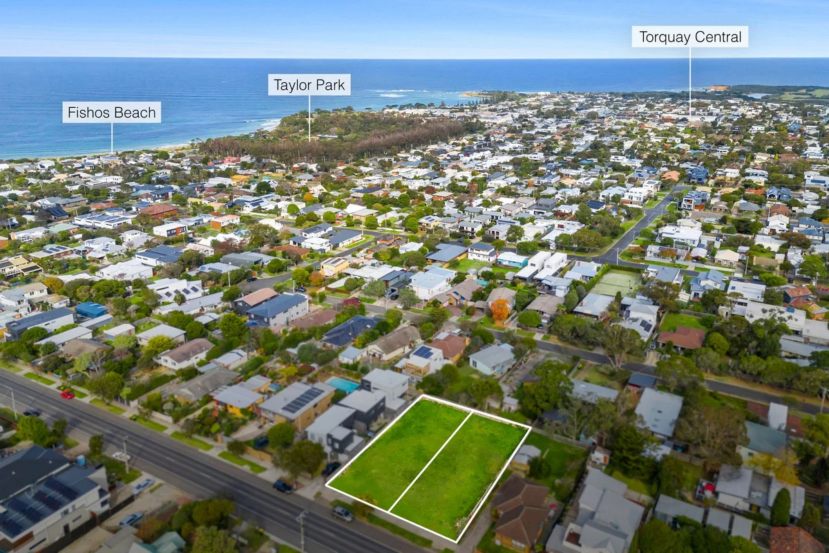 Description: Opportunities like this are few and far between! Situated in Old Torquay, these two adjoining titled allotments offer a 644m² (approx.) of prime land each, boasting 15.54m frontages and a depth of 41.45m, totalling 1288m2. Nestled in an ultra-convenient spot in Old Torquay, residents can enjoy easy walking access to local amenities including primary and secondary schools, cafes, restaurants, shopping, and public transport. The nearby Deep Creek Reserve walking track and Whites Beach offer scenic routes for leisurely strolls, with attractions like the Salty Dog Café and Torquay Bowls Club just a stone's throw away. Whether you're a builder eyeing a development opportunity (STCA) or a family dreaming of building your ideal home, don't let this chance slip by. Secure your piece of property in the highly sought-after Surf Coast today. Contact us for more information.