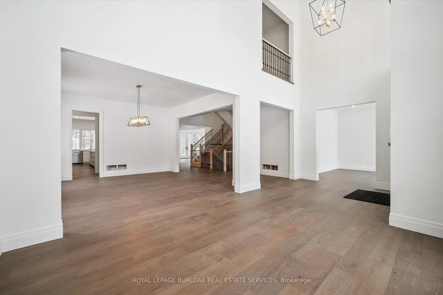 Tucked away in the quiet, tranquil outskirts of Brantford, this exceptional 5,000 sq. ft. new build sits on nearly 3 acres of land. Surrounded by towering evergreens and backing onto Fairchild Creek, 5 West Harris Rd. offers a rare sense of privacy and natural beauty-seamlessly paired with refined luxury living. The home features expansive living spaces with soaring cathedral ceilings, rich engineered hardwood flooring throughout, and modern finishes. Large windows frame breathtaking views of the private, wooded surroundings, creating a seamless connection to nature. Just off the front door, a dedicated home office provides a quiet workspace. A formal living room and separate formal dining room offer elegant spaces for entertaining, while the chef's kitchen, designed for everyday living and gatherings, features high-end appliances, extensive cabinetry, a large centre island, a convenient servery, and an additional dining area opening effortlessly to the family room. Upstairs, four spacious bedrooms each feature their own private ensuite. The primary suite is a true retreat, complete with a generous bedroom, spa-inspired ensuite featuring a freestanding tub, a massive walk-in shower, and an expansive walk-in closet with a skylight that pours natural light into the space. The full basement provides a blank canvas to tailor to your lifestyle-ideal for a home theatre, gym, bar, or games room. Step outside to a pool-sized backyard with a covered outdoor living area, perfect for relaxing or entertaining while immersed in nature.