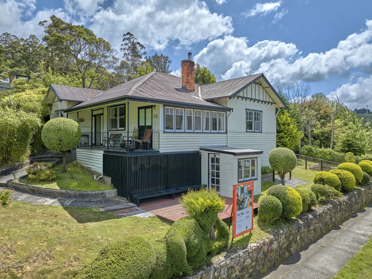 Description: Located in the heart of Derby, 50 Main Street is an unmistakable landmark, affectionately known as 'The Lazy Queen', thanks to its iconic topiary hedge.. This versatile house offers an irresistible combination of old-world charm and modern comfort with its Tasmanian oak floorboards, large windows, and high ceilings. The three sunny elevated decks of the property provide stunning views of Derby's lake, featuring the famous floating sauna, green slopes and world-renowned mountain bike trails. The larger deck previously used for glamping boasts an outdoor kitchen, shower, bath tub and "fun dunny". The property includes multiple bathrooms, kitchens, and sitting areas, making it a perfect fit for small and large groups. The house can be segregated into two independently functioning units and comfortably accommodate 6 to 8 people. With riders in mind, this property has been purposefully rejuvenated, and special attention has been paid to create an excellent bike storage/workshop space with an adjoining deck. Updated with modern heating elements, wiring, and plumbing, this property is an ideal investment opportunity in a hotspot for growth and short-term accommodation. Overall, 50 Main Street offers the perfect blend of historic charm, modern convenience, and unbeatable location. It's the ideal home base for anyone looking to make the most of everything Derby has to offer.