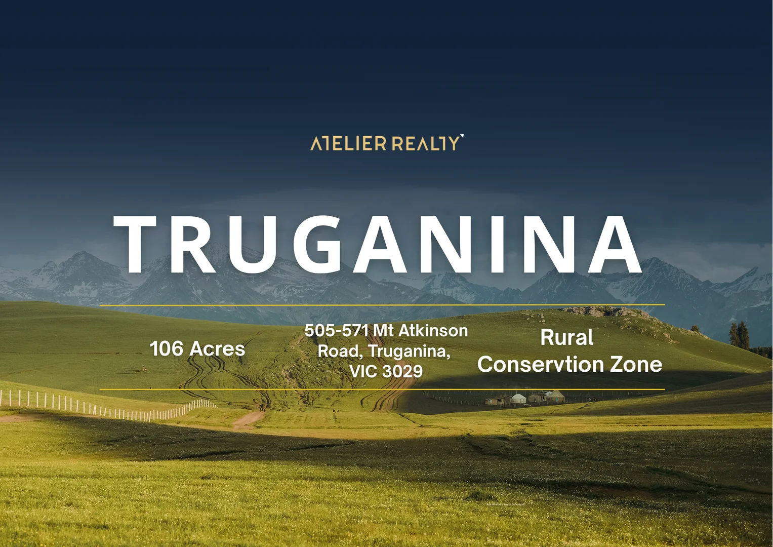Description: BigginScott presents for sale, 505-571 Mt Atkinson Road Truganina. An exceptionally rare opportunity to secure a substantial land holding totalling 42.50 ha* within prime location in a core western market surrounded by institutional developers and major occupiers. Benefit from major infrastructure projects both underway and proposed to significantly enhance connectivity. 526 metres frontage. The property sits close to Troups Road Logistics Estate, offering excellent access to Melbourne's arterial road network, including the Western Freeway and the M80 Metropolitan Ring Road. Currently zoned RCZ (Rural Conservation Zone). Link to Melton planning scheme for potential uses: https://lchka-schemes-production.s3.ap-southeast-2.amazonaws.com/au/vic/melton/zone/VPP/35.06-rural-conservation-zone.pdf Call Romy Gakhar on 0430 521 119 for further details!!! Interested parties should conduct their own Due Diligence prior to making any offers. Due Diligence Checklist - http://www.consumer.vic.gov.au/duediligencechecklist